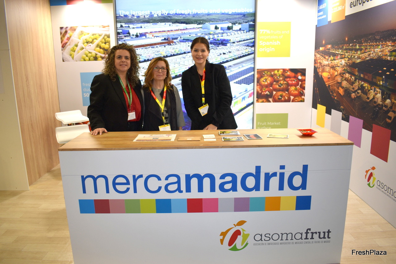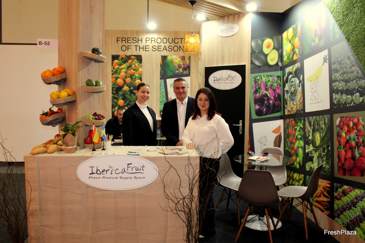 En el stand de Ibérica Fruit, Mariana Schultz, Serafín Bolea y Alba Rosillo