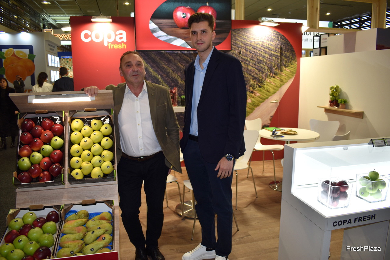 Antonio y Xavi, en el stand de Copa Fresh, productores de hueso y pepita de Lleida.