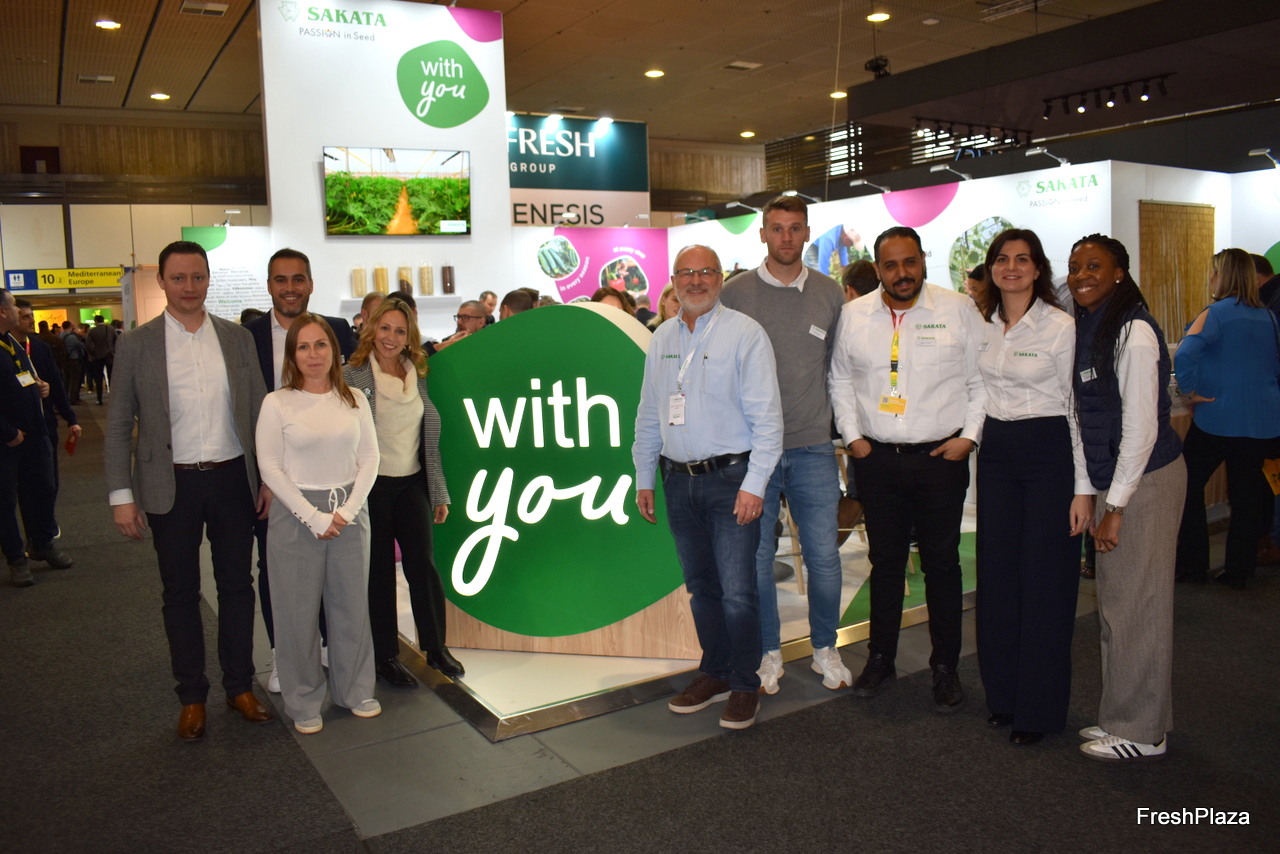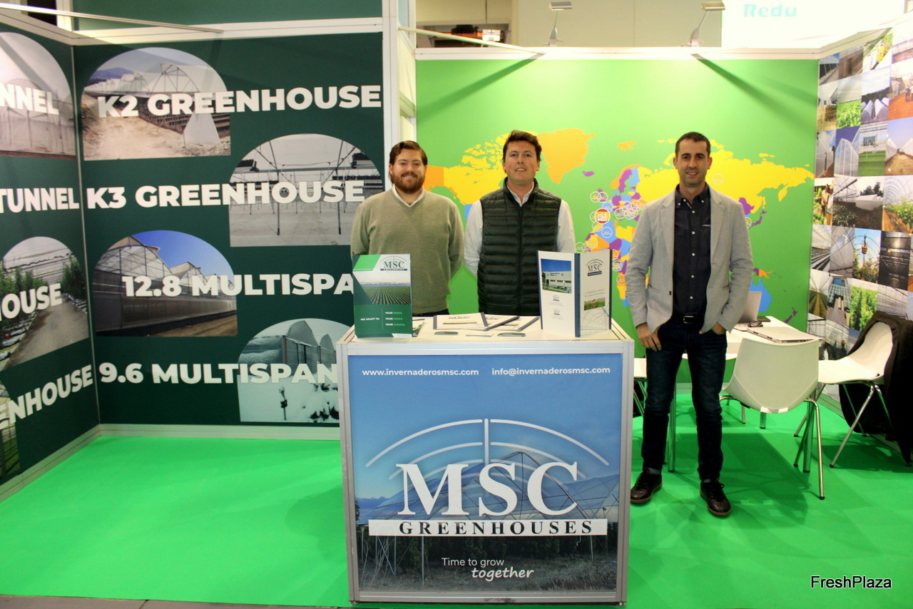 Parte del equipo de Surexport, en el invernadero oculto dentro del stand.