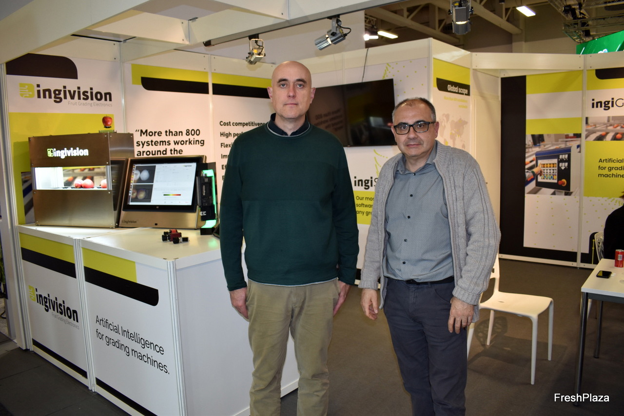 Vicente M. Ribera y Alejandro Sales, de Ingivision, fabricantes de sistemas electrónicos para la calibración de frutas y hortalizas, de fácil manejo.