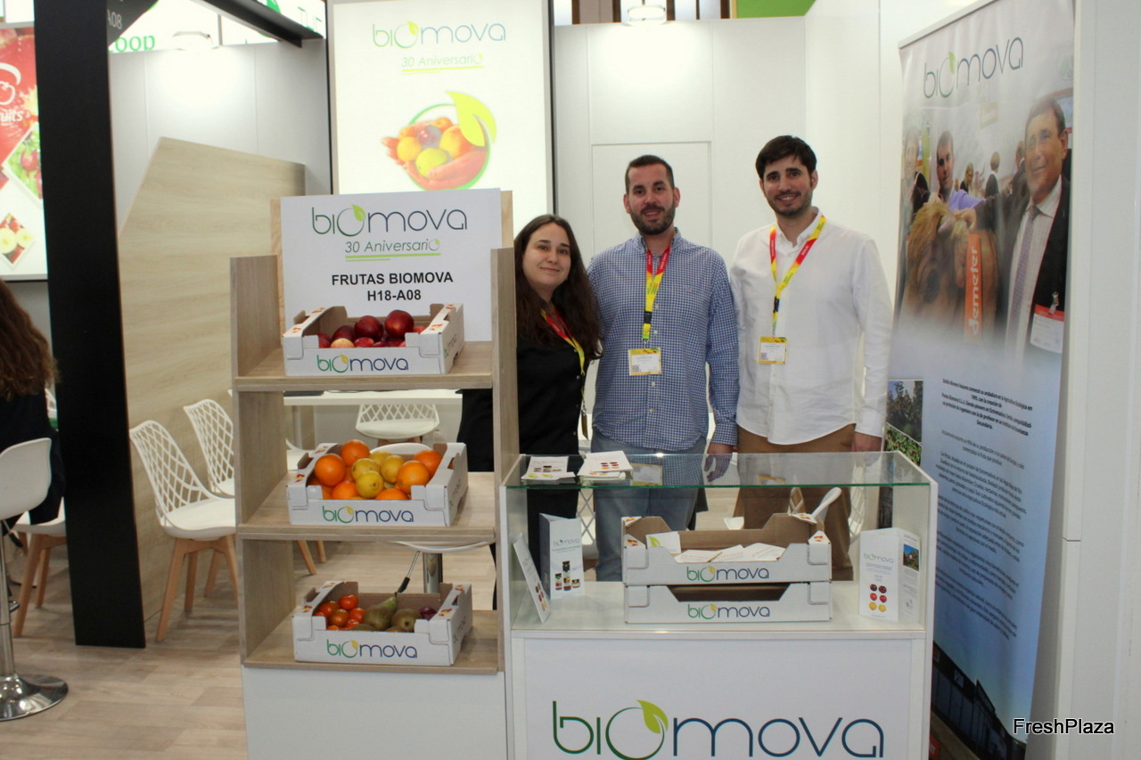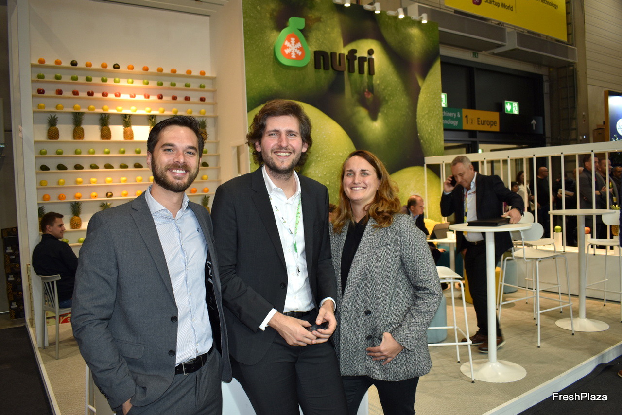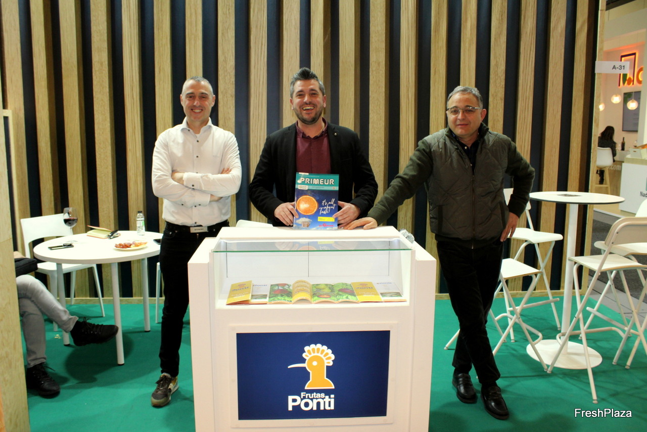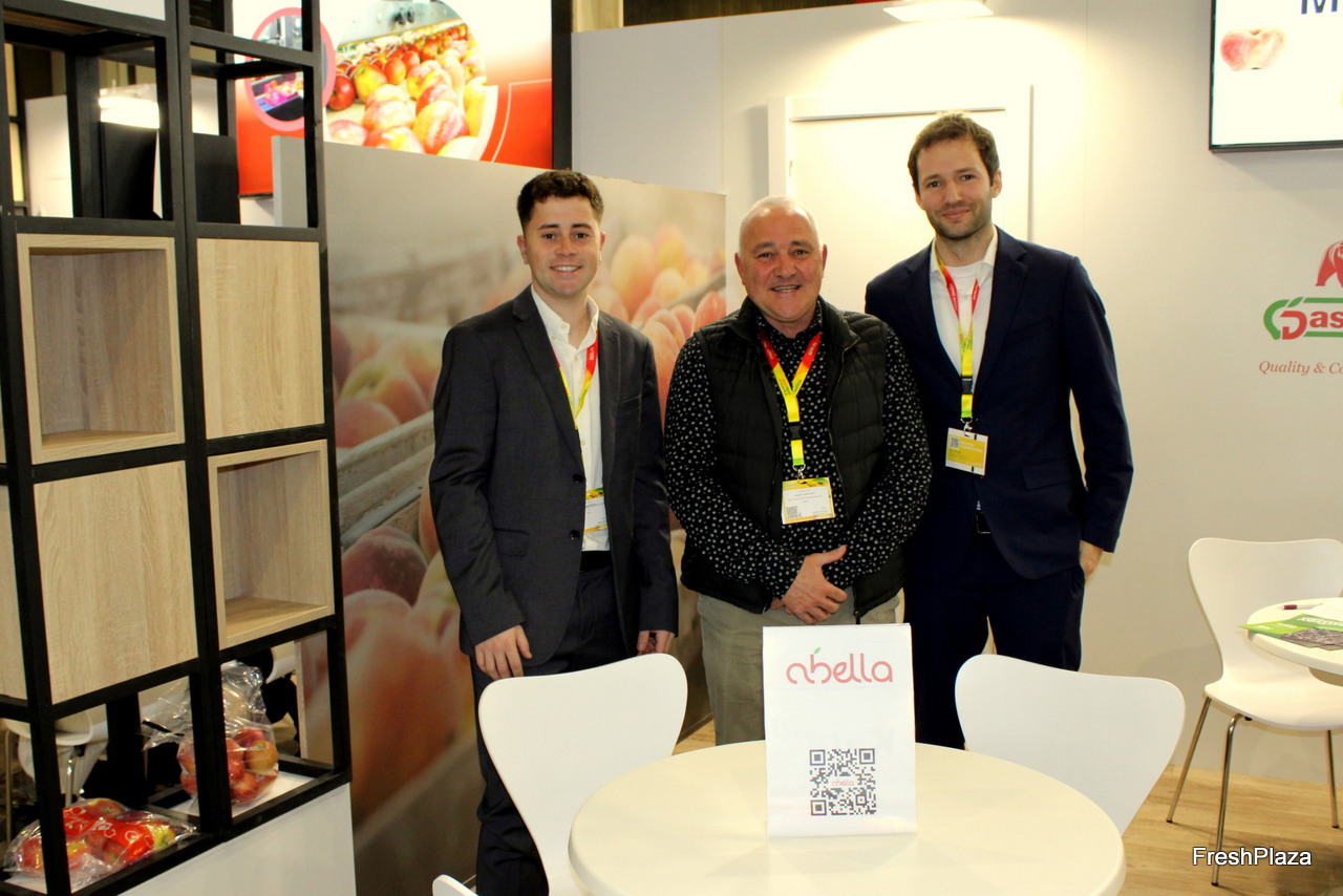 Abel Alarcón, Esther Egea y Rafa Monar, de la empresa valenciana Brio Fruits, visitando Fruit Logistica.