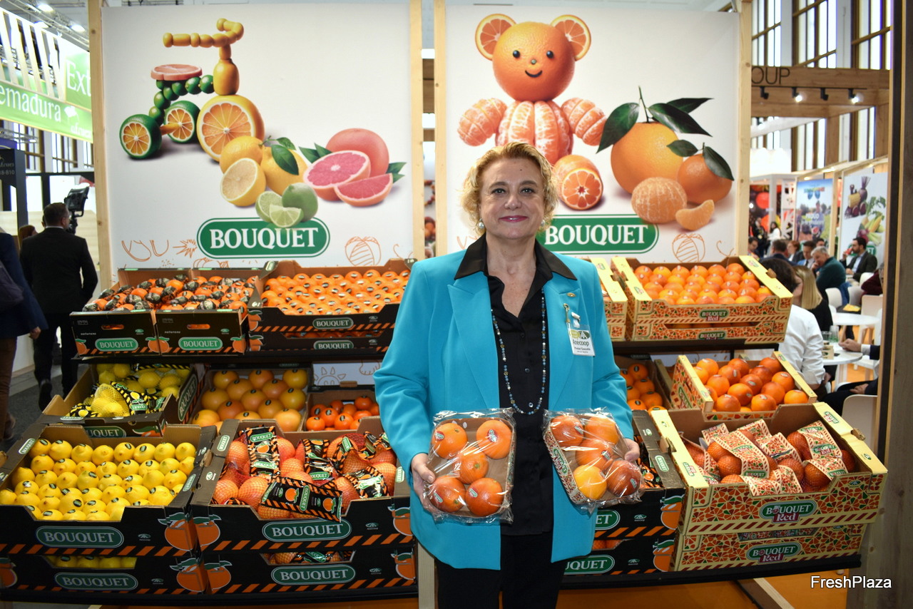 Piedad Coscollá, responsable de marketing en Anecoop, presentando la nueva línea de naranjas rojas Red Bouquet.