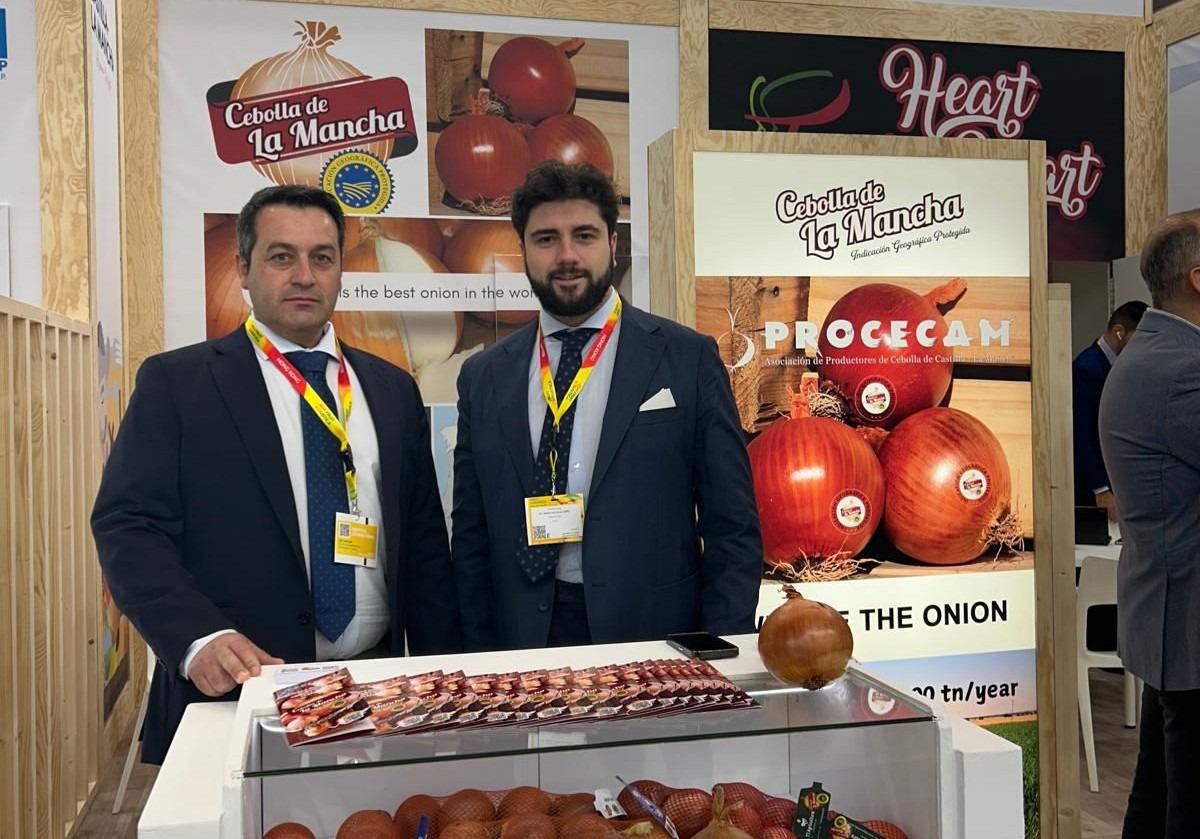 David Sáez y Jaime Castillo, en el stand de PROCECAM, promociando la cebolla de Castilla-La Mancha.