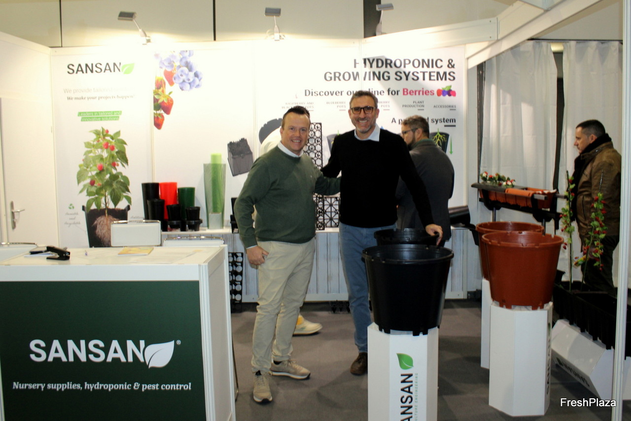 Carlos Gómez, CEO de Sansan, junto a José Sancho, director comercial de la empresa valenciana especializada en macetas para el cultivo en sustrato