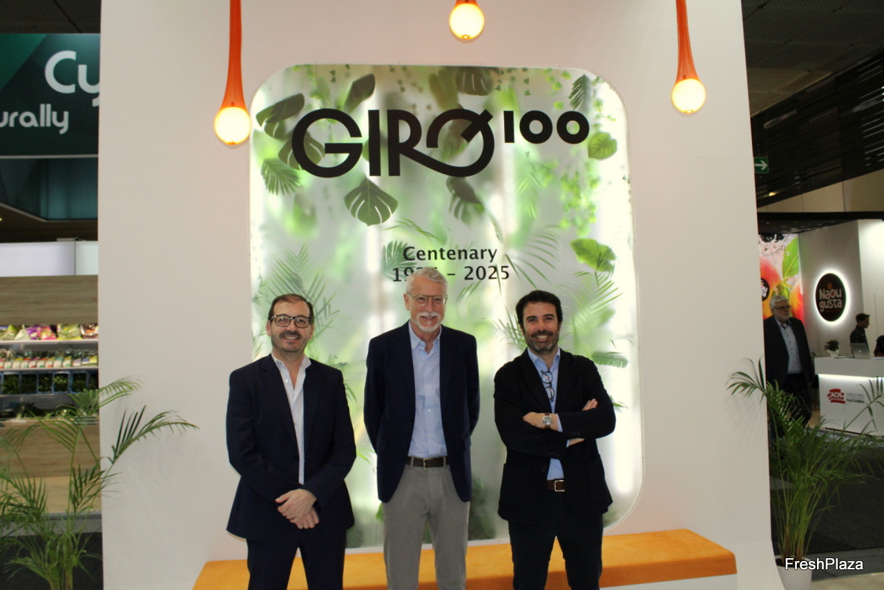 Celebrando el centenario de Giró, su director general Salvador Solá, el presidente de la compañía, Ezequiel Giró, y su CEO, Alex Riviere Giró. En esta edición especial en la que la empresa cumple un siglo, Giró ha puesto el foco en su línea de envases compostables