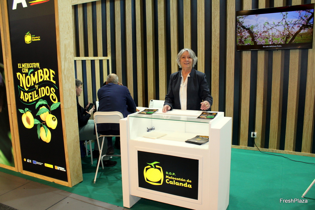 Celia Arzán en el stand del melocotón "con nombre y apellidos", el Melocotón de Calanda DOP