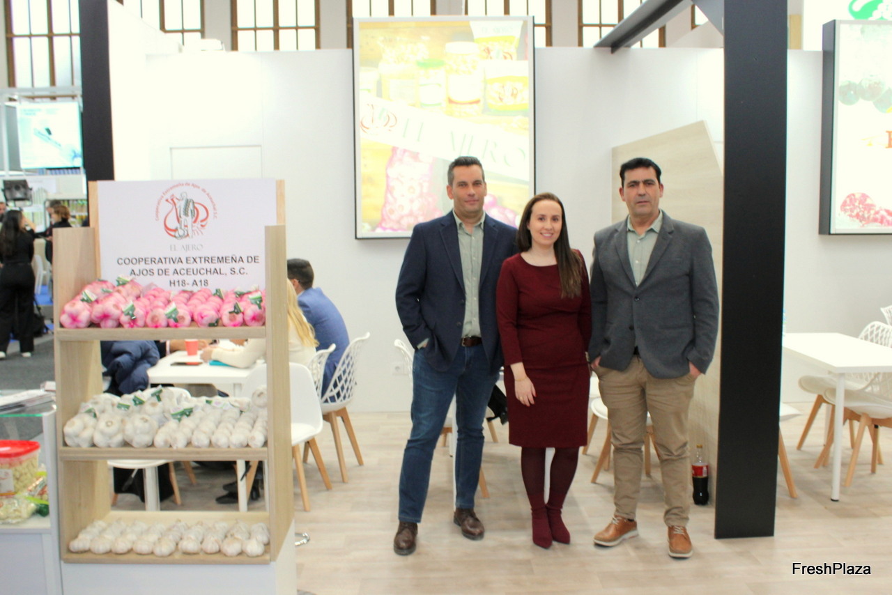 Francisco Borja, Pilar Fernández y Ángel González, de la Cooperativa Extremeña de Ajos de Aceuchal