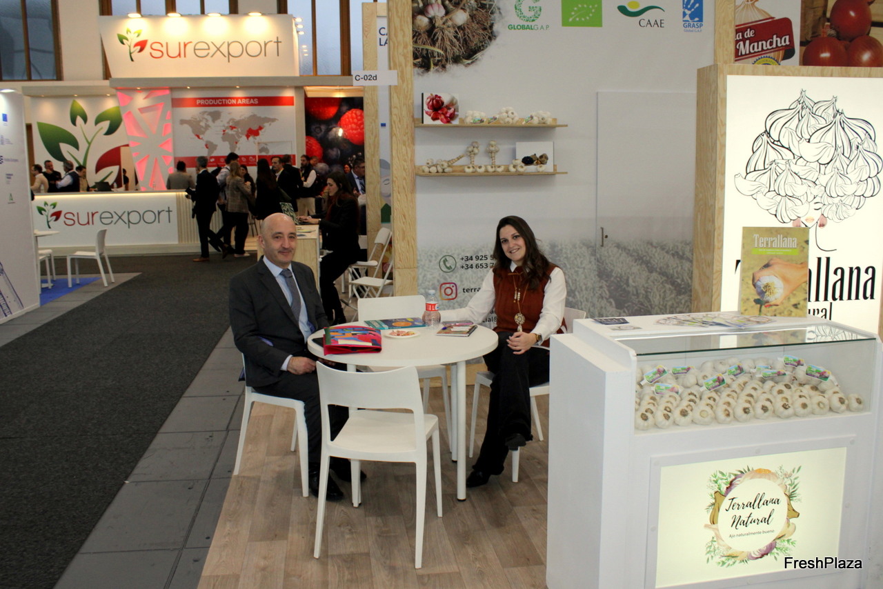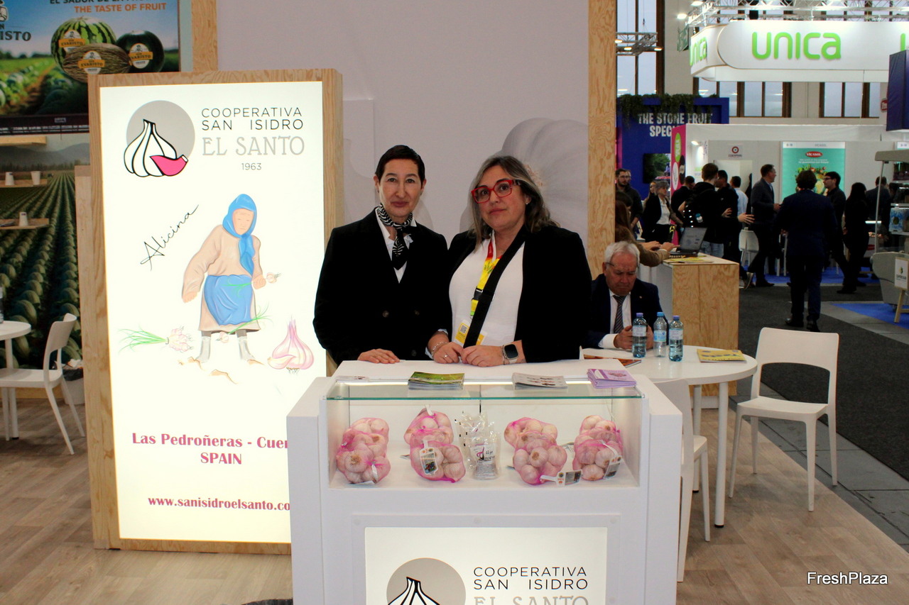 Carmen Chacón y M.ª José Arellano, en el stand de la Cooperativa san Isidro El Santo, especializada en ajo morado