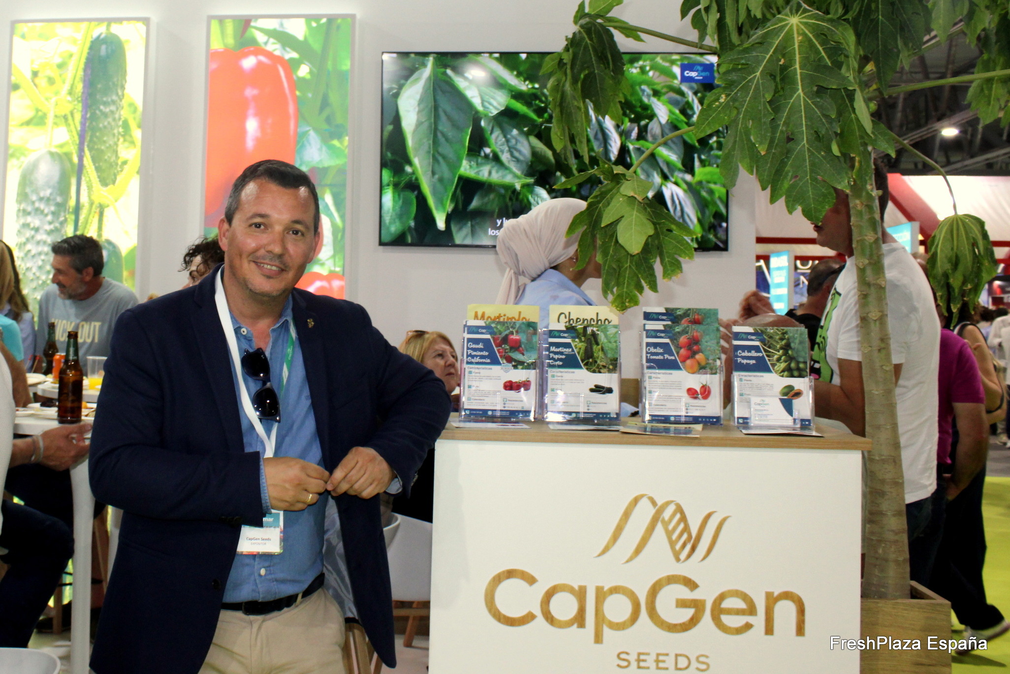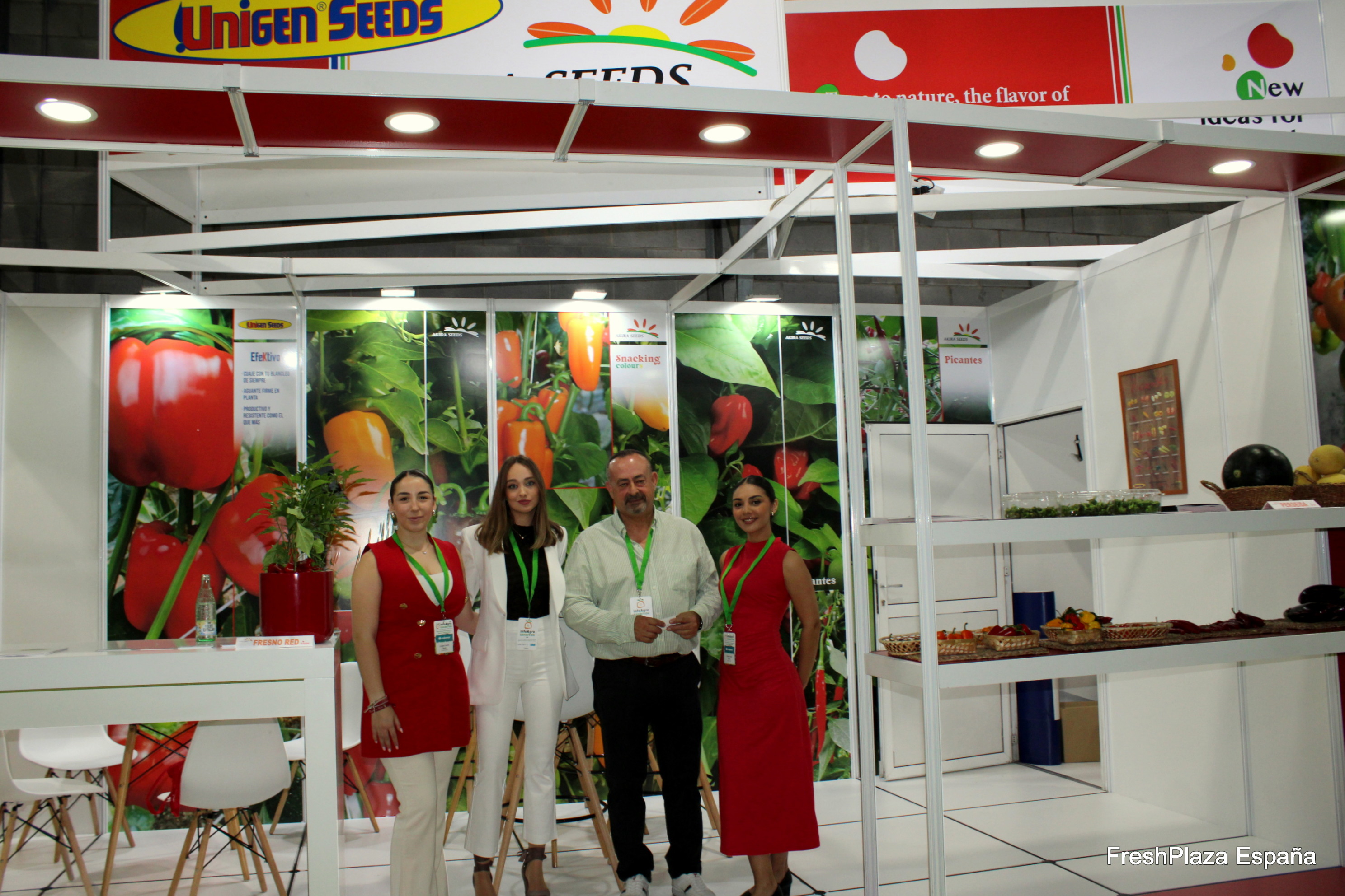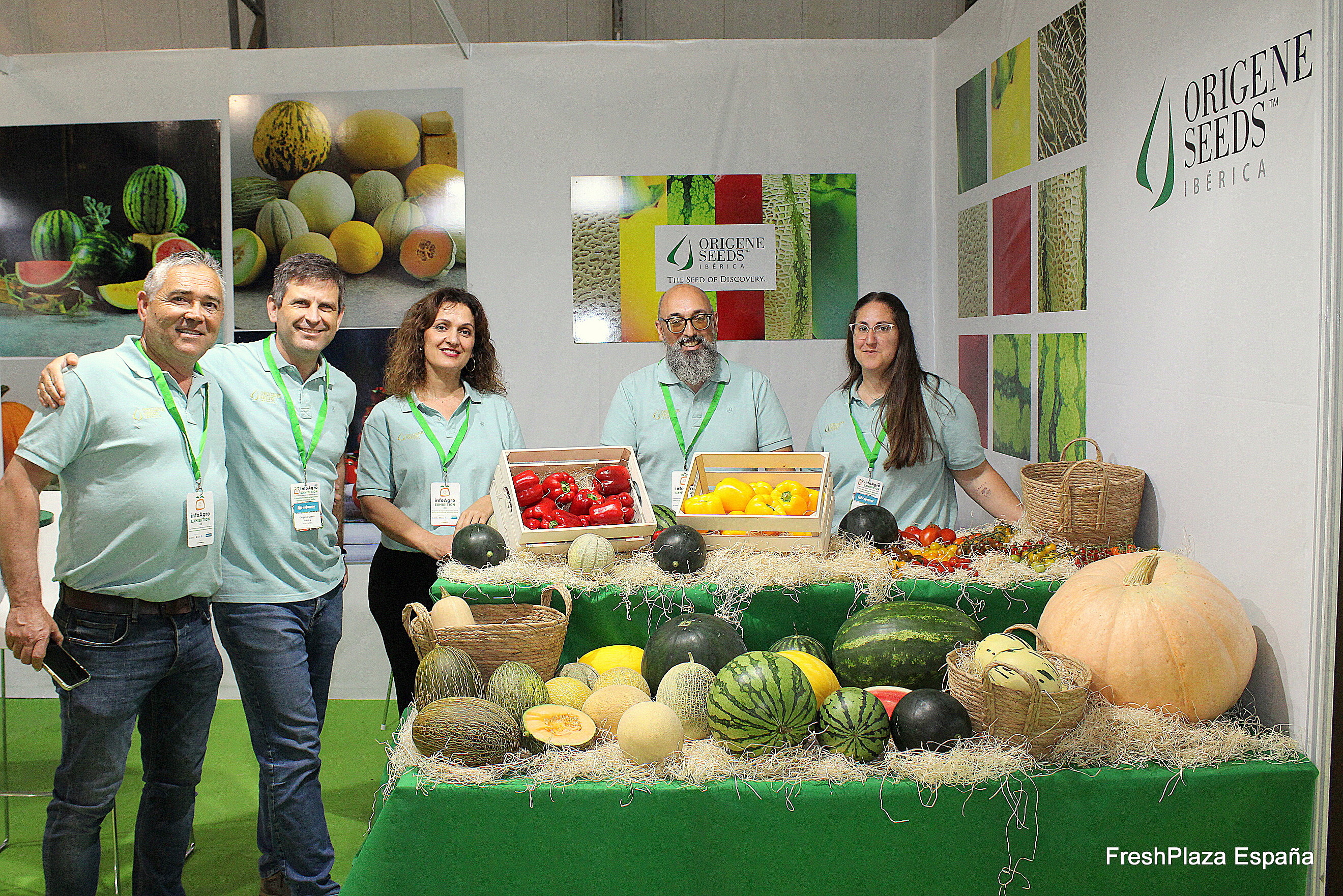 Stand de Origene Seeds, especializados en pimiento California, pero con una amplia gama de sandía y melón