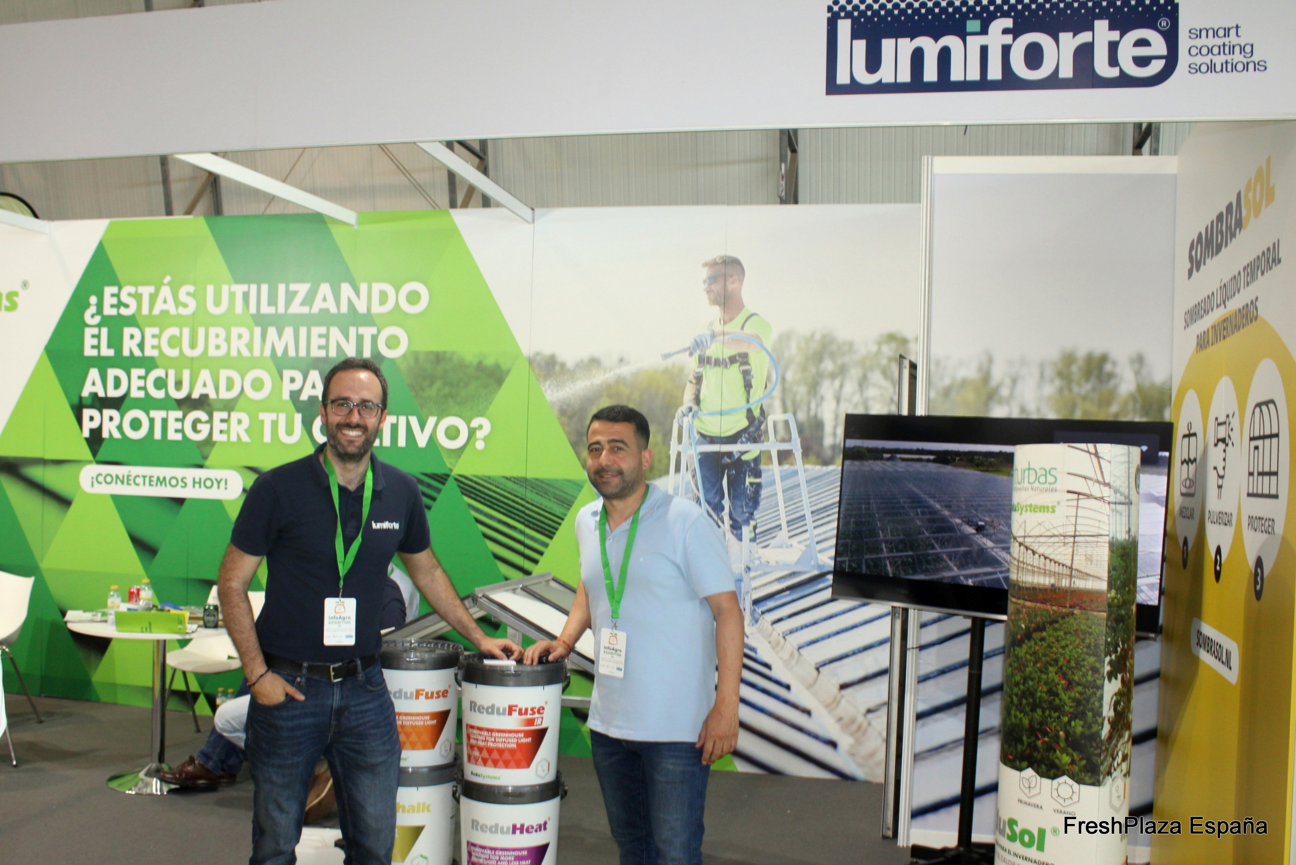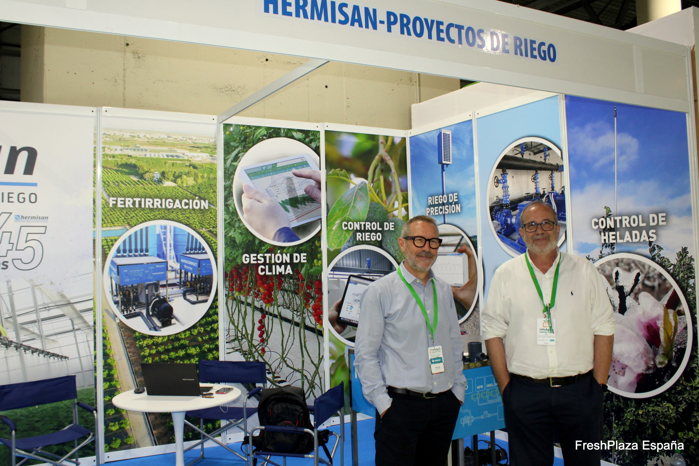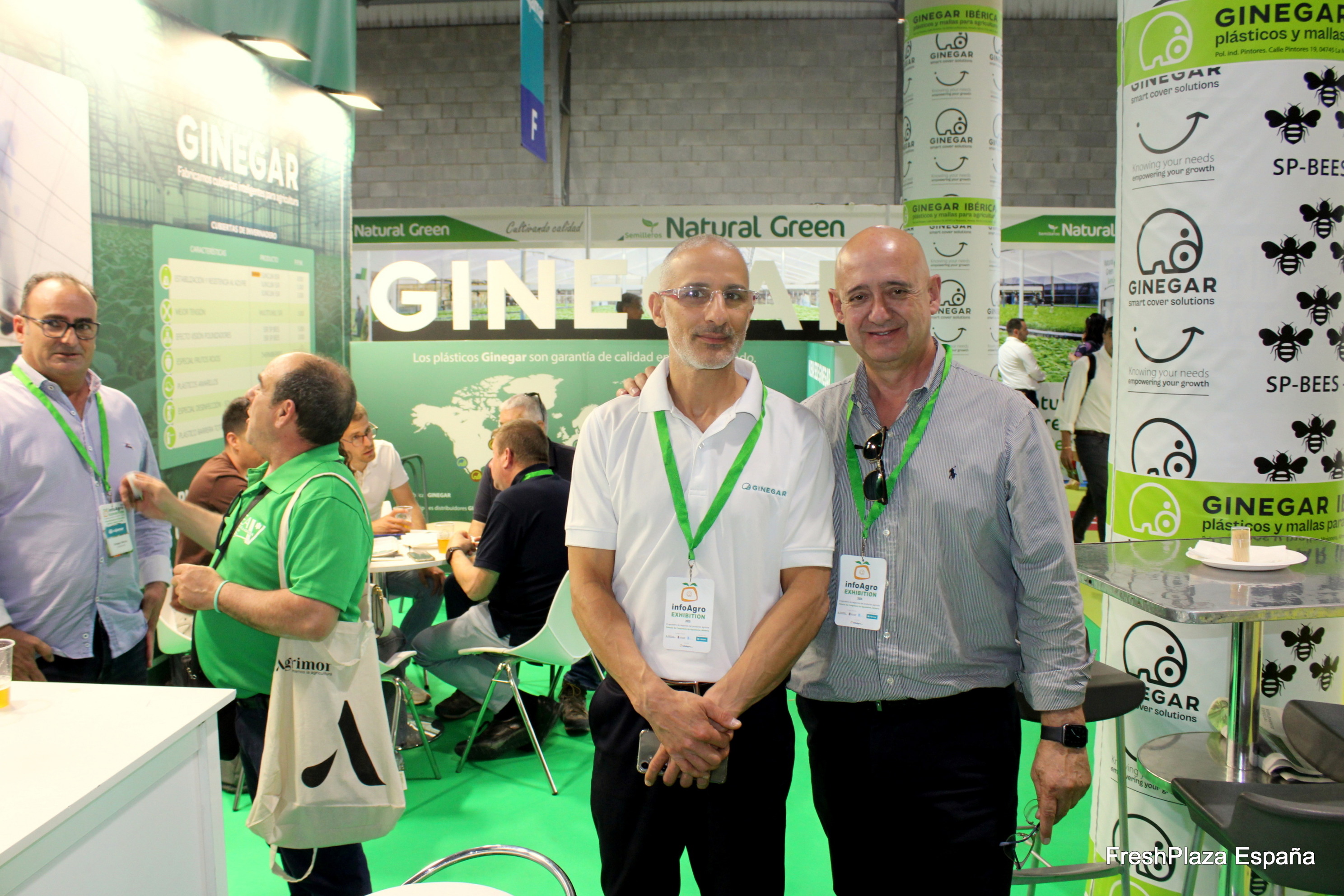 Esteban Castro y Fernando Estévez, en el stand de Tecnoponiente Invernaderos