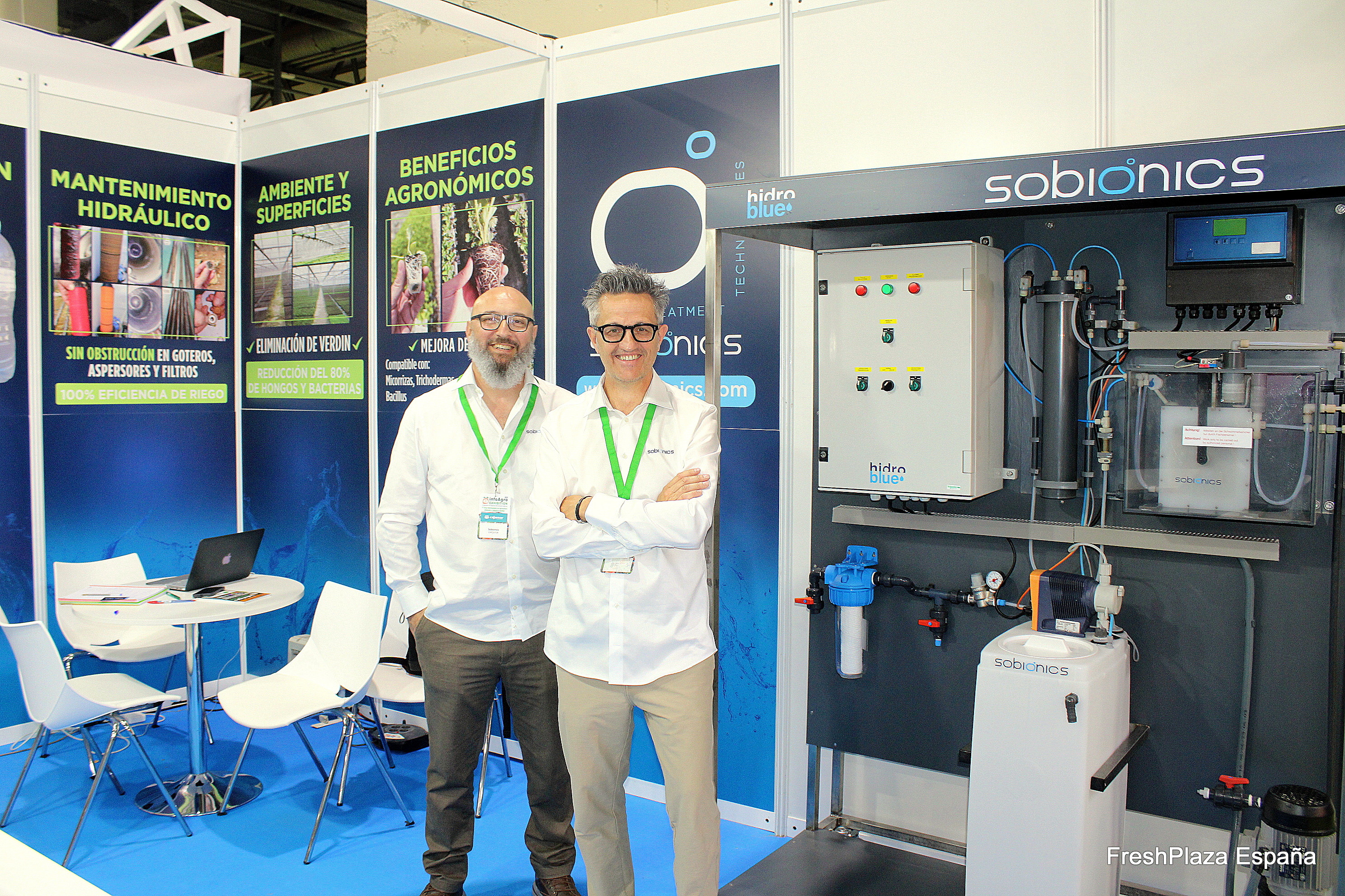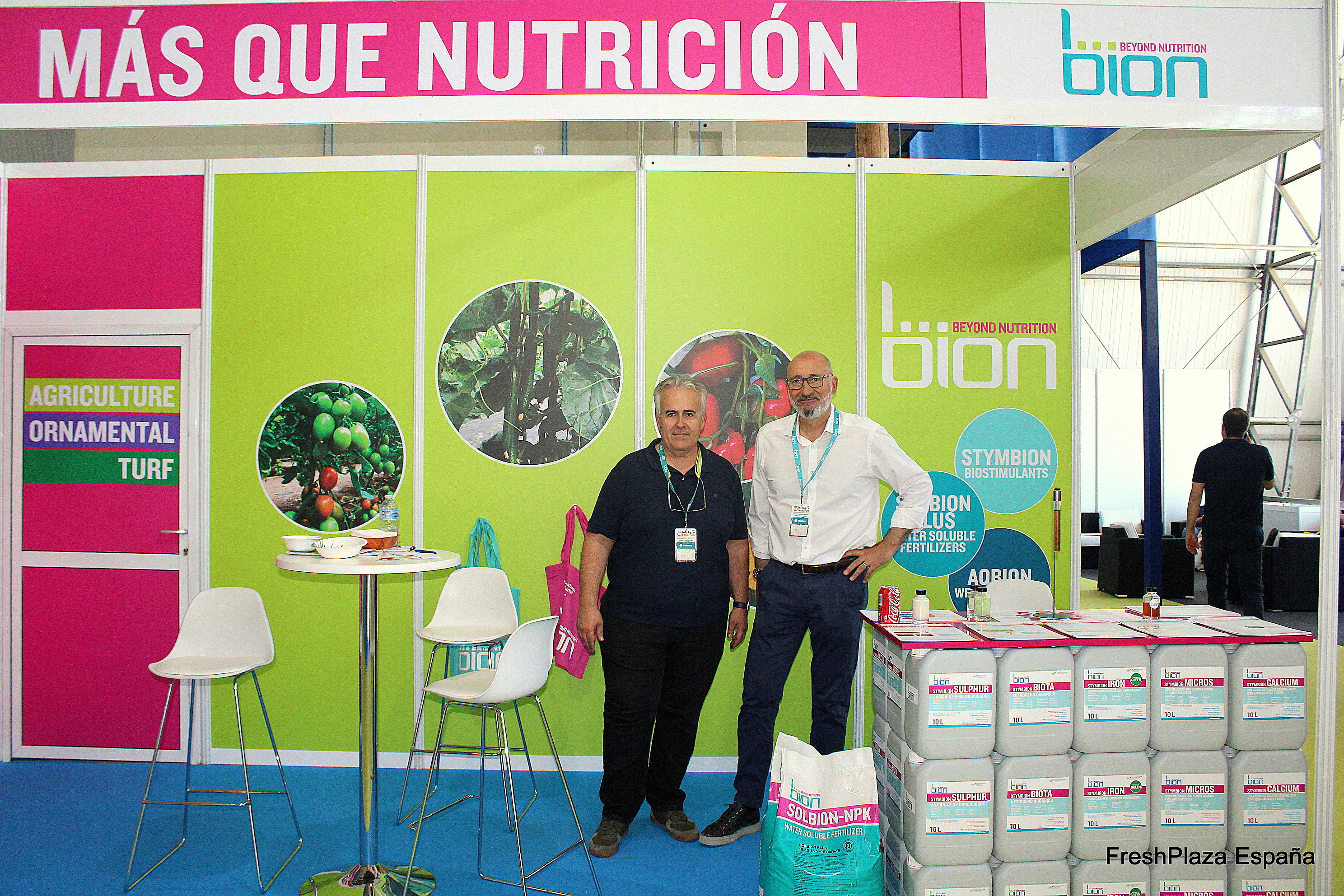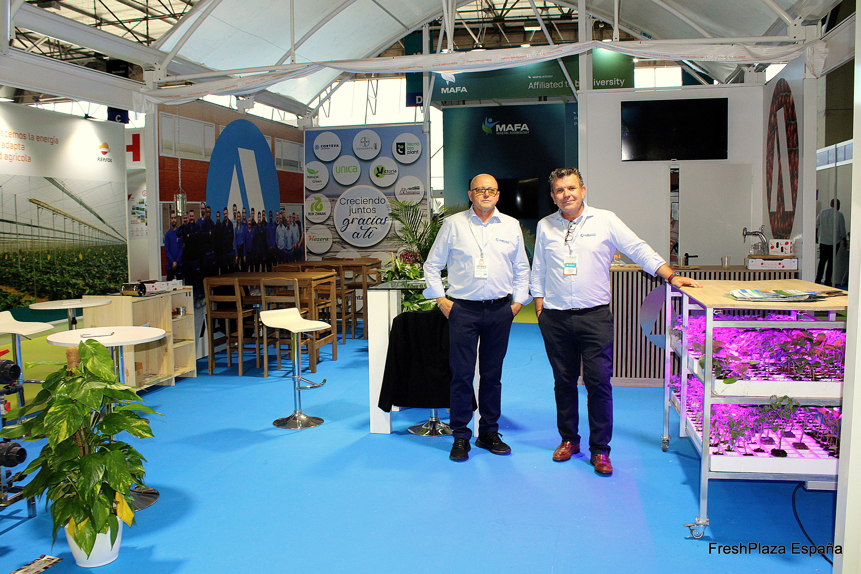Esteban Castro y Fernando Estévez, en el stand de Tecnoponiente Invernaderos