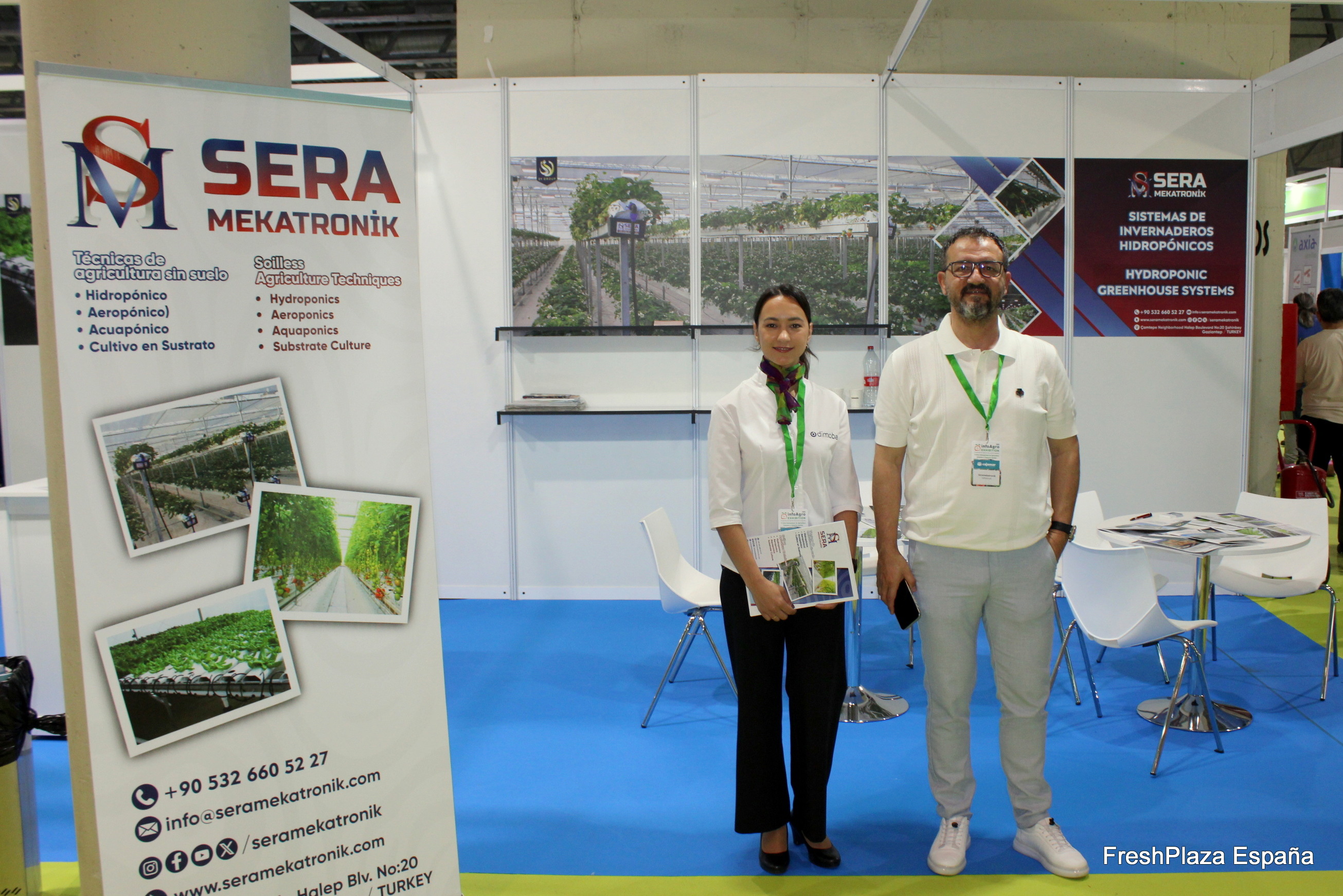 En el stand de la empresa turca Sera Mekatronik, Jezabel Fernández y Serdar Yilmaz