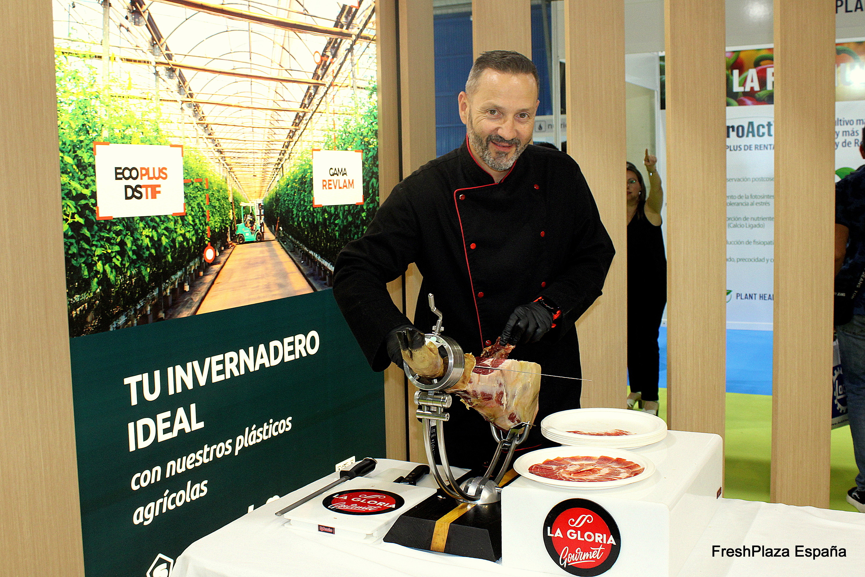 El sabor, y más de productos andaluces como el jamón, acompañó en todo momento a los visitantes de Infoagro. En la foto, el cortador profesional Pedro Jesús Fornieles