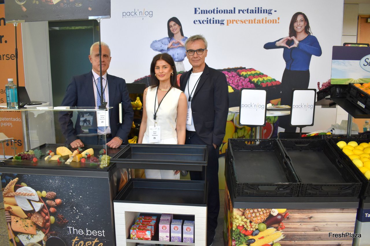 Vicente Mange, Amra Advic y Franz Leisch, en el stand de Pack'nlog.