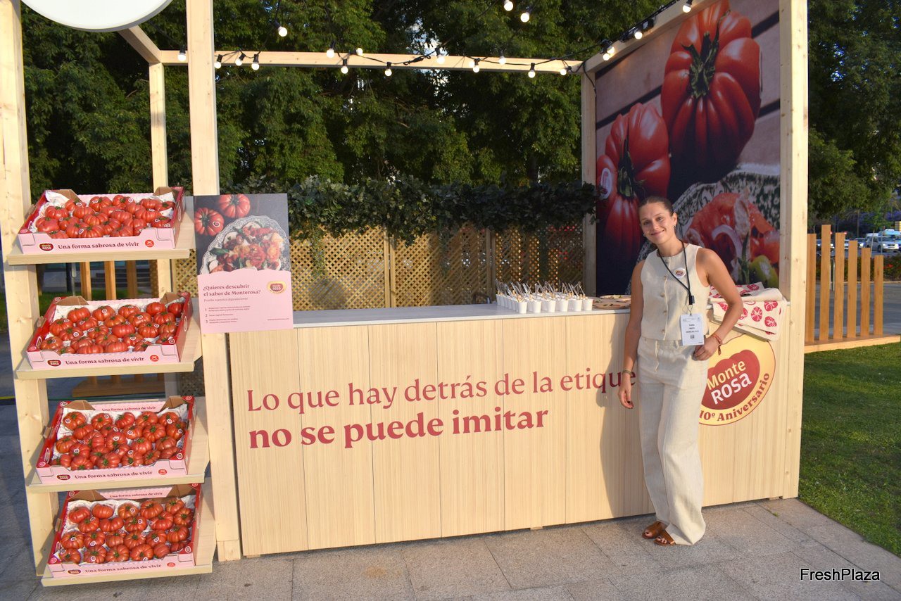 Celia Marín, en el stand de Semillas Fitó, con desgustaciones del tomate MonteRosa.
