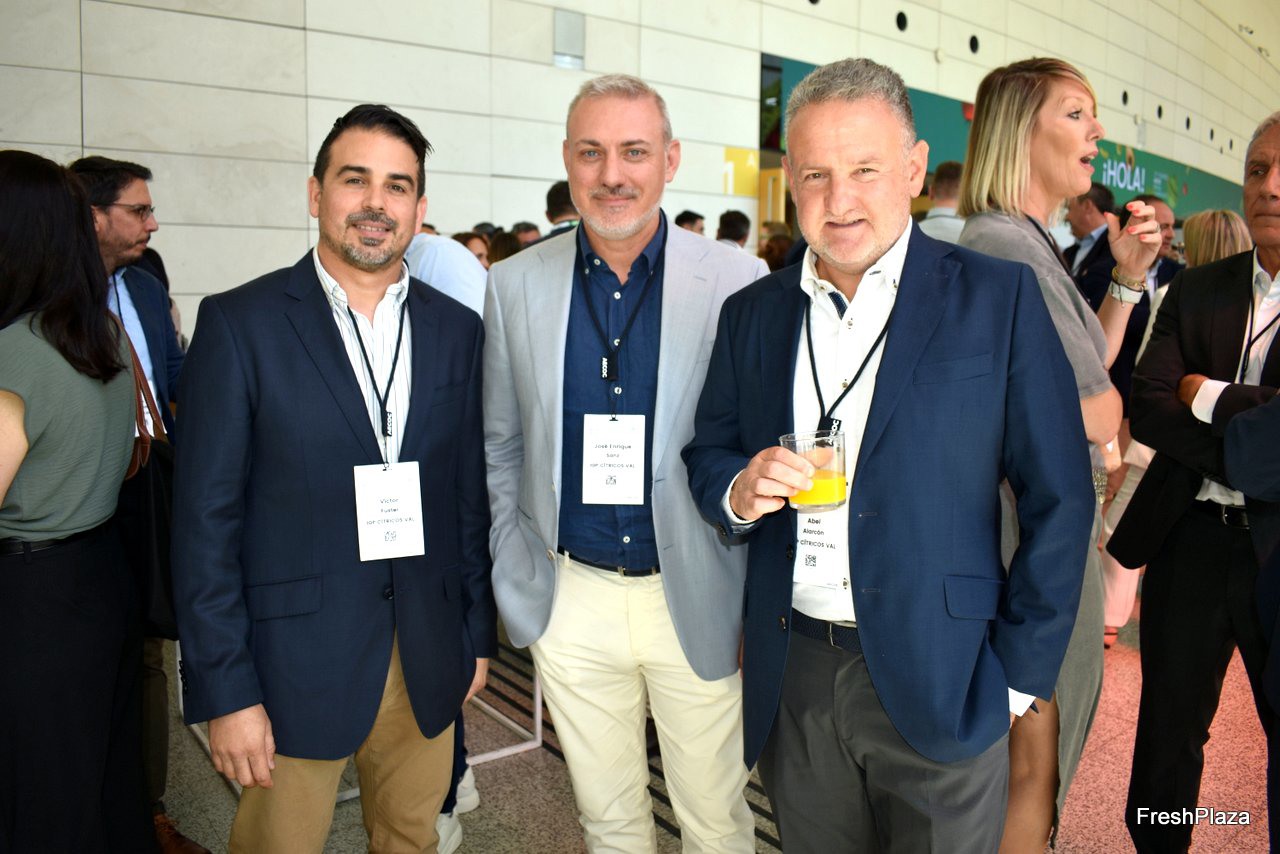 Víctor Fuster y José Enrique Sanz, de IGP Cítricos Valencianos, con a Abel Alarcón, Gerente de Brio Fruits, parte de la IGP Cítricos Valencianos.