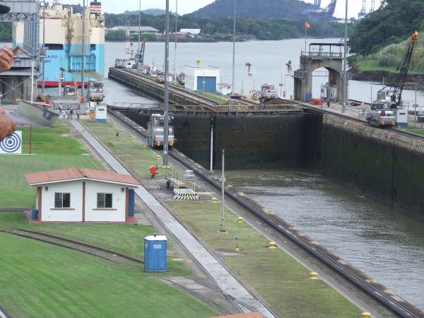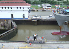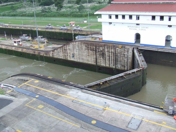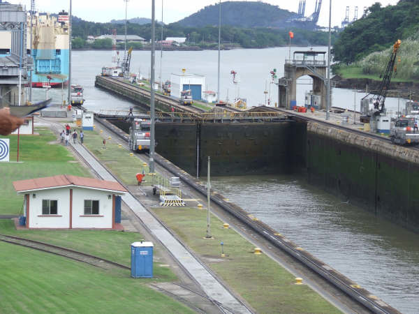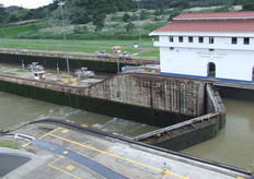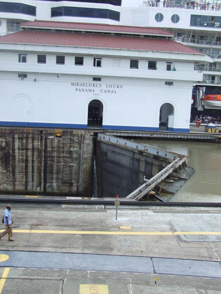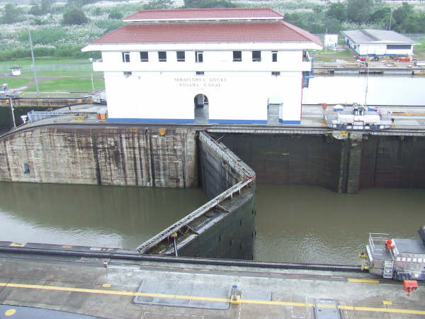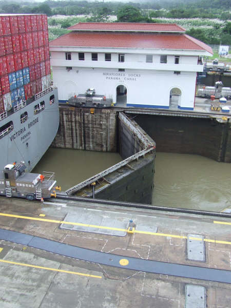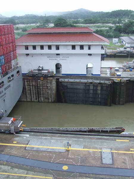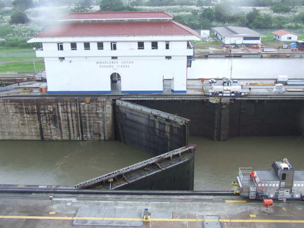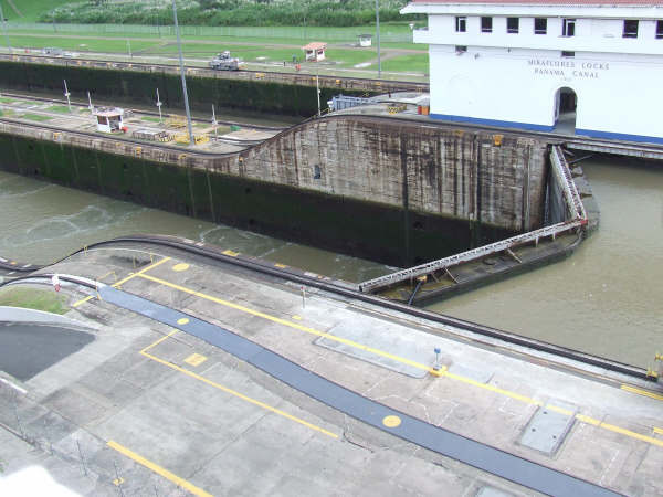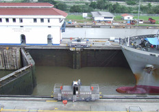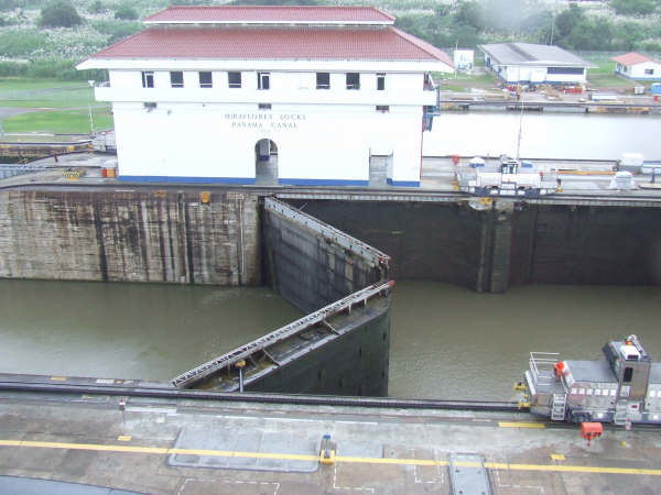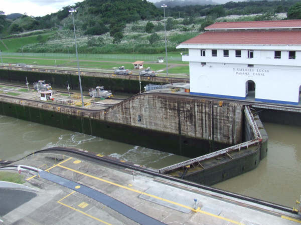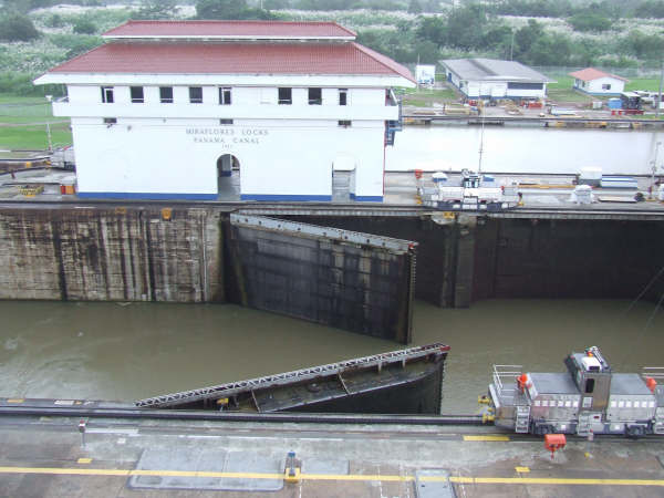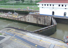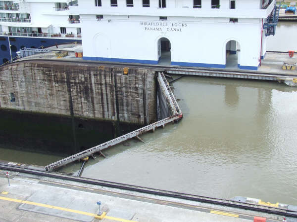 Una vez cruza se vuelve a cerrar y empiezan a subir/bajar los niveles de agua para el siguiente buque