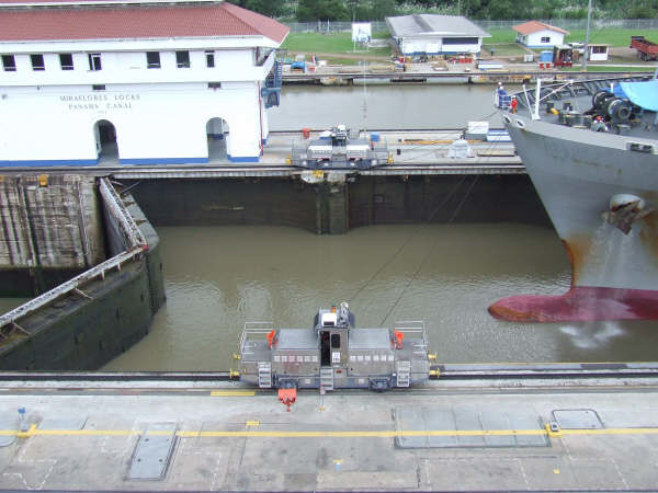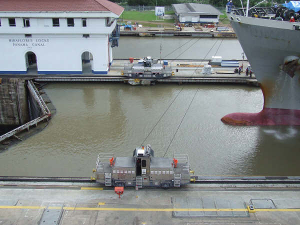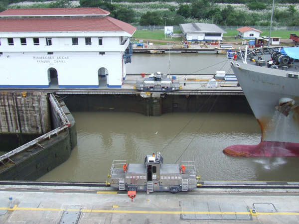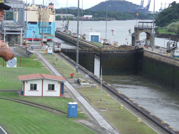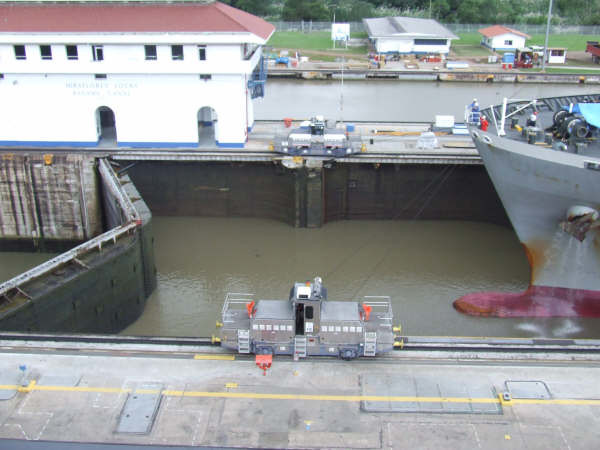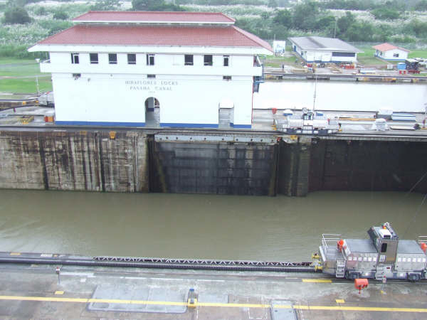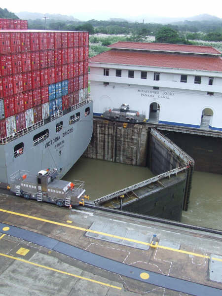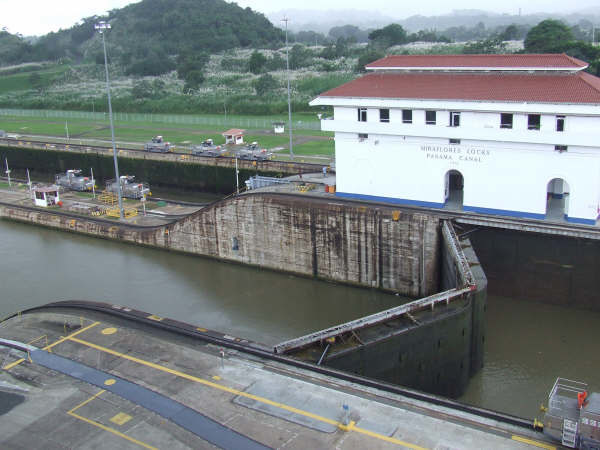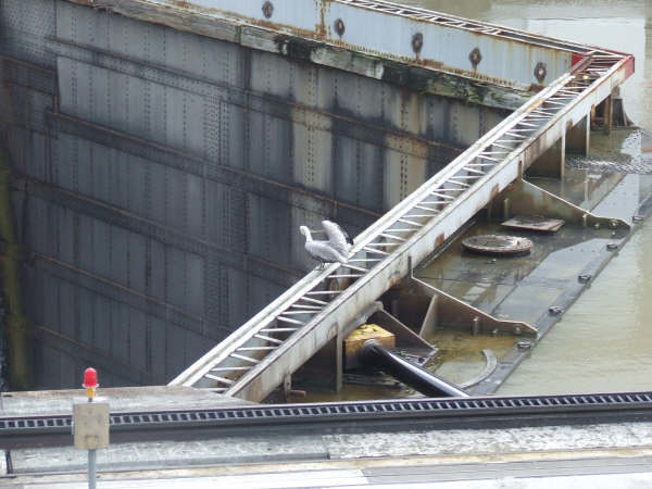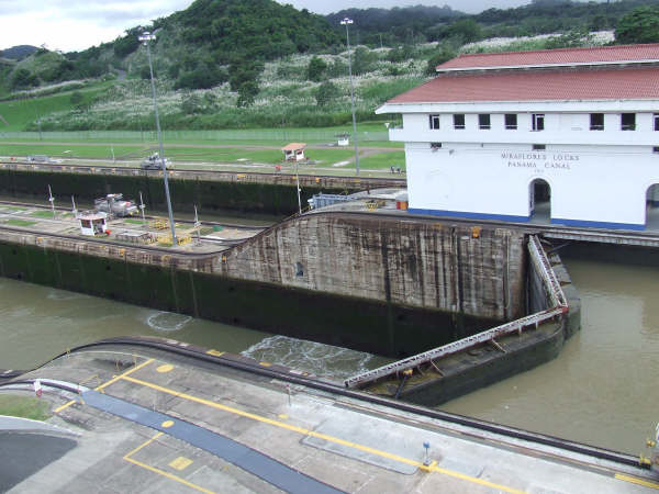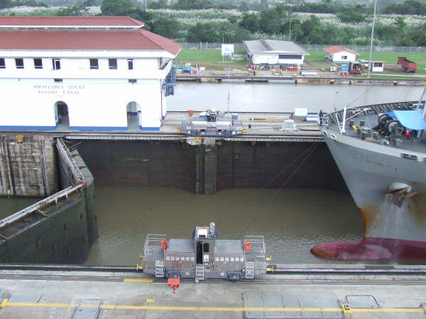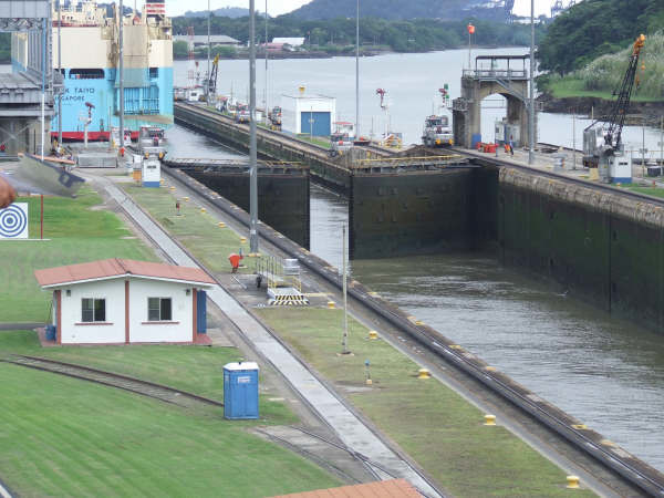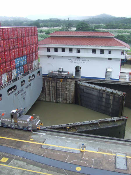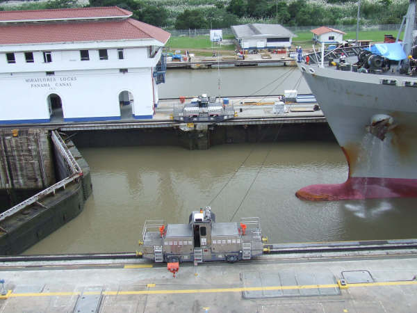 Una vez cruza se vuelve a cerrar y empiezan a subir/bajar los niveles de agua para el siguiente buque