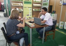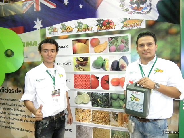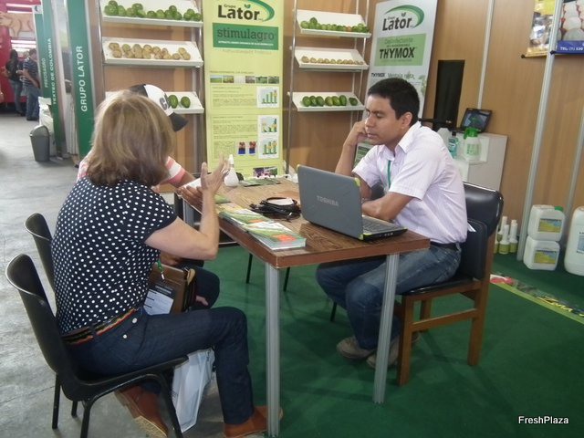 Santiago Pérez y Carlos Chávez de la empresa Frutas Tropicales como visitantes de Expo Agrofuturo 2012