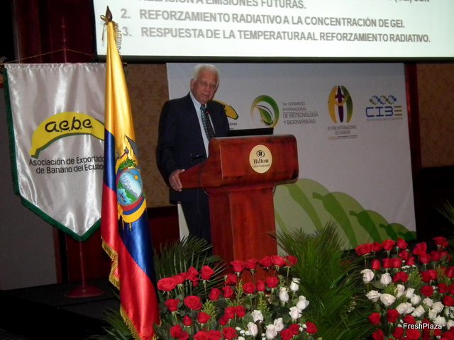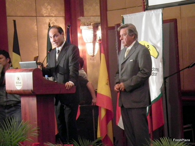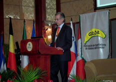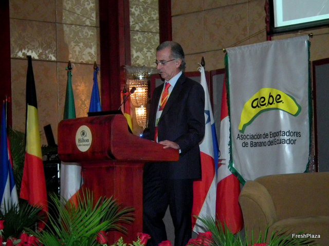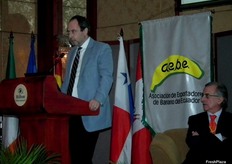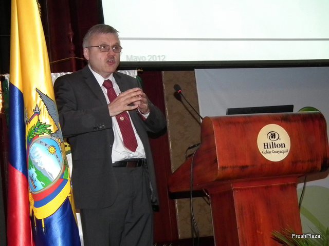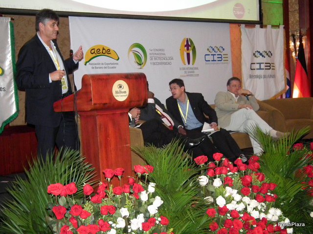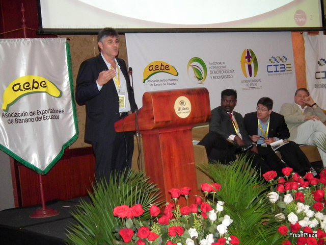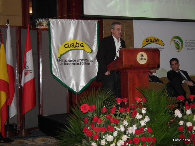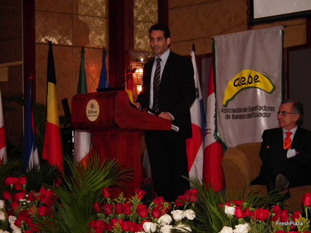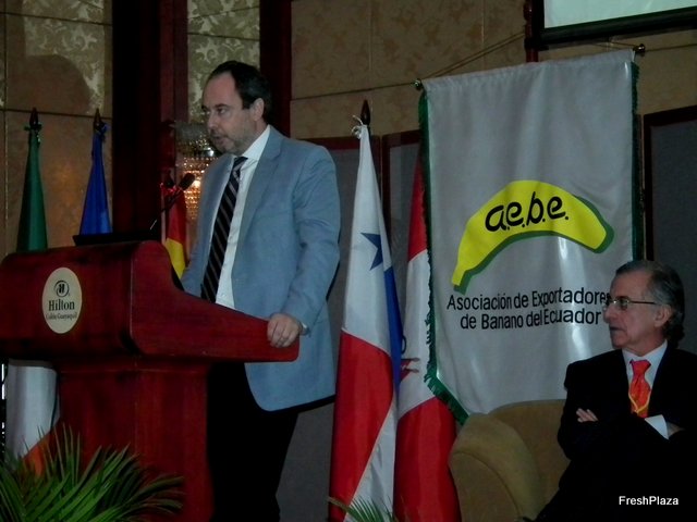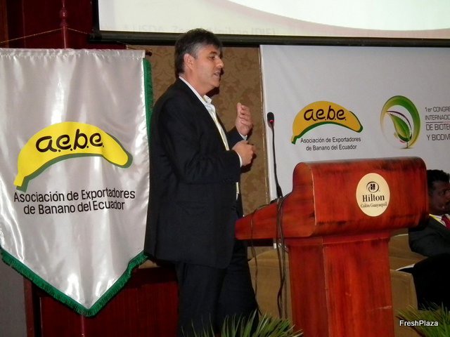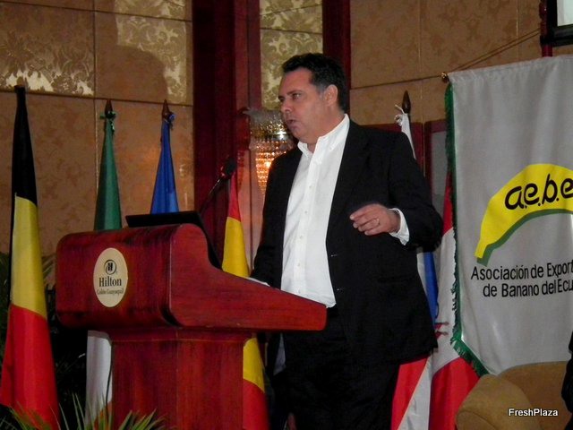 Werner Nader de la empresa Eurofins brindando una conferencia sobre Los Desafíos para la exportación de banano al mercado de la Unión Europea.