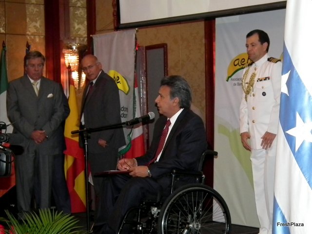 El Vicepresidente del Ecuador el señor Lenín Moreno dando unas palabras en la inauguración del 9no Foro Internacional del Banano en Guayaquil