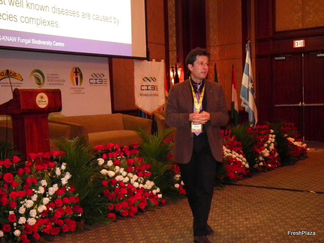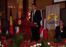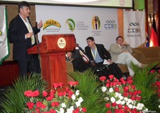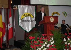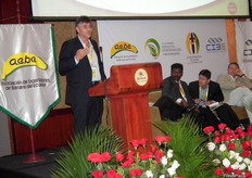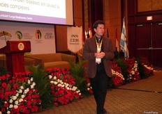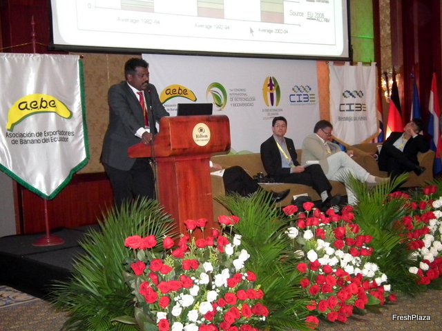 Sabu Athanas en representación de la empresa de los Emiratos Árabes Unidos Yalda Trading Co la cual importa bananos a los Emiratos Árabes e Irán brindando una conferencia sobre la exportación de banano hacia el Oriente Medio.
