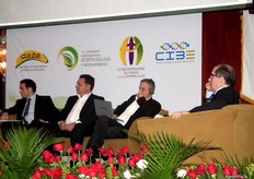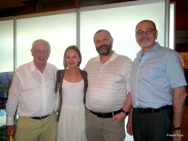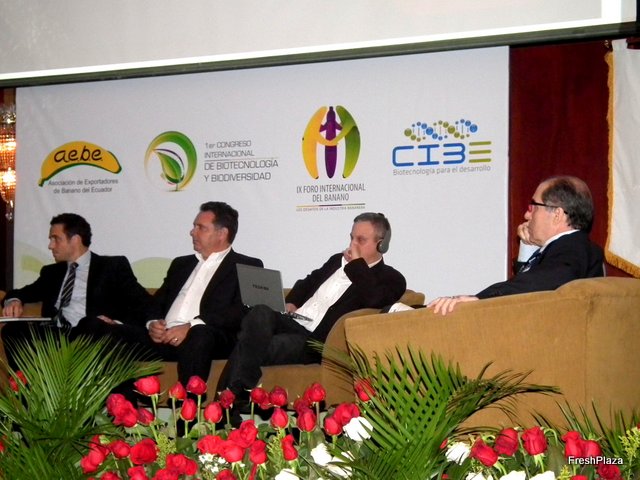 Hans Ellerbrock (Alemania), Olga Kalyakina (Ucrania), Vladimir Zakharov (Ucrania) y Sergey Ecins (Latvia) en el 9no Foro Internacional del Banano en Guayaquil, Ecuador