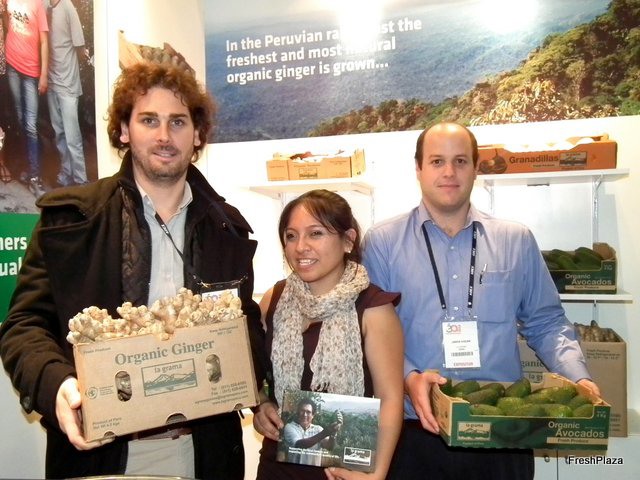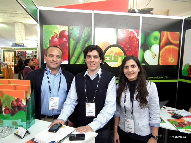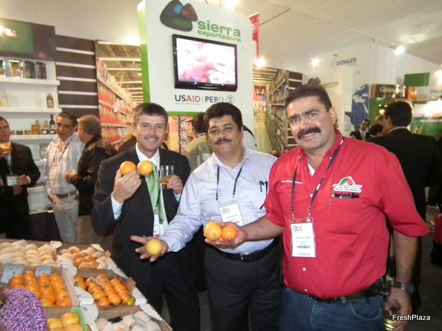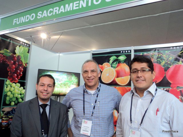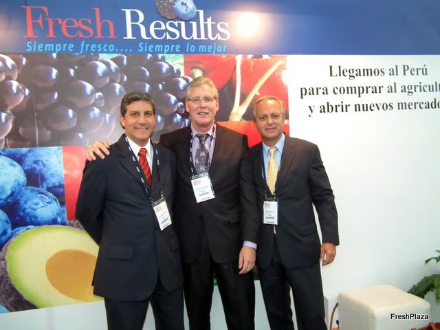 Orlando Tafur, Eric Crawford y Ulises Sabato de Fresh Results, empresa de Estados Unidos presente en la Expoalimentaria Perú 2012.