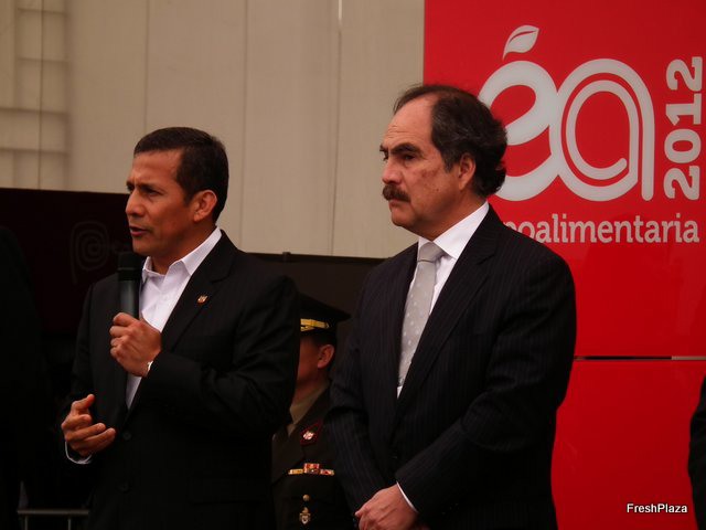 El presidente del Perú, señor Ollanta Humala junto al presidente de la Asociación de Exportadores (ADEX) el señor Juan Varilias en la ceremonia de inauguración de Expoalimentaria Perú 2012