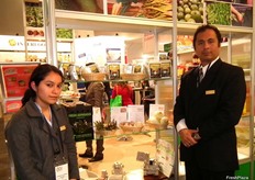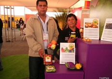 Federico Urbina y Miguel Alvarado de APROMALPI, productores de mango y limón durante la Expoalimentaria 2012