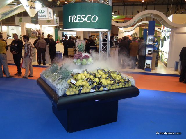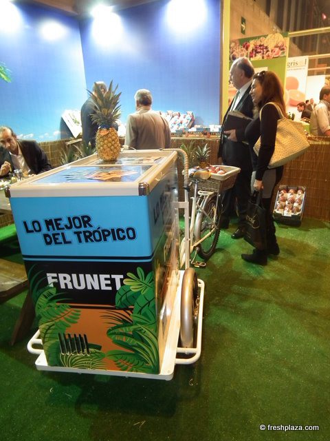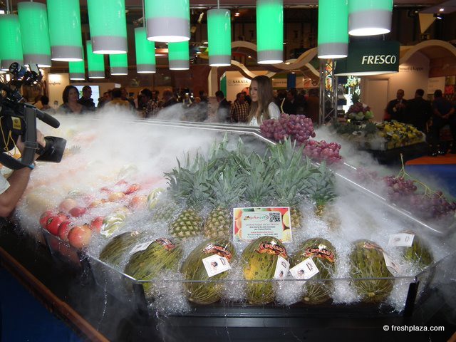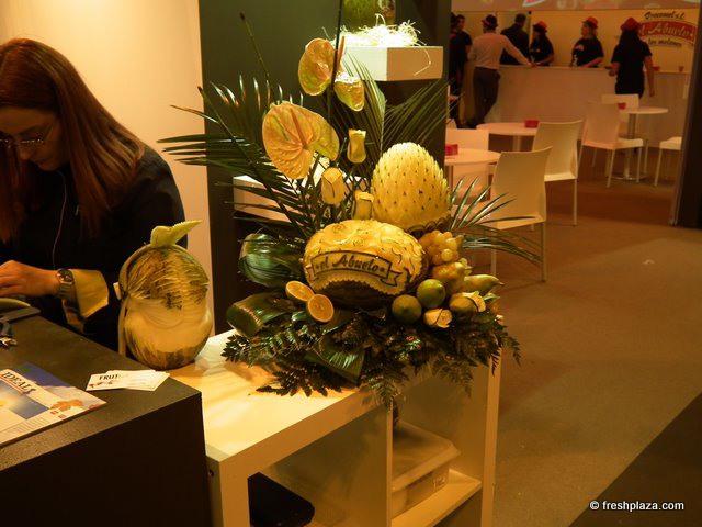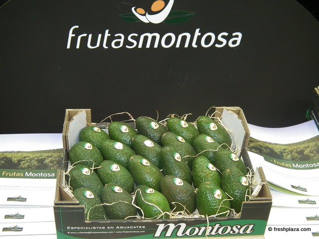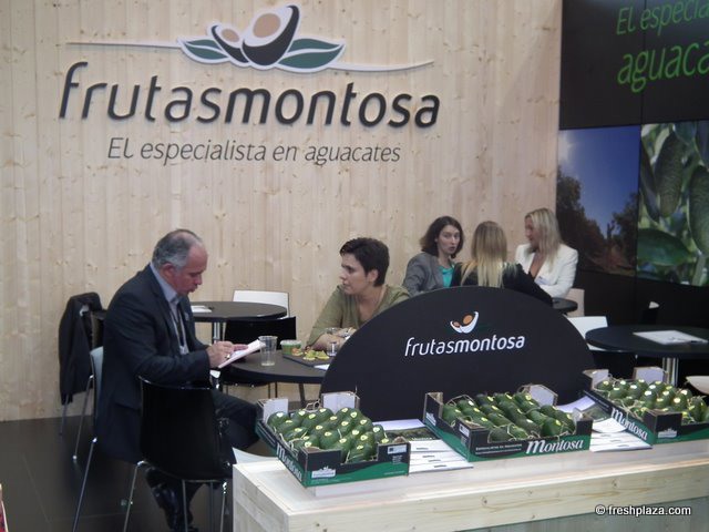 Stand de Frutas Montosa promocionando sus aguacates.La firma presume de ser el mayor comercializador europeo de aguacate y uno de los mayores de mango.