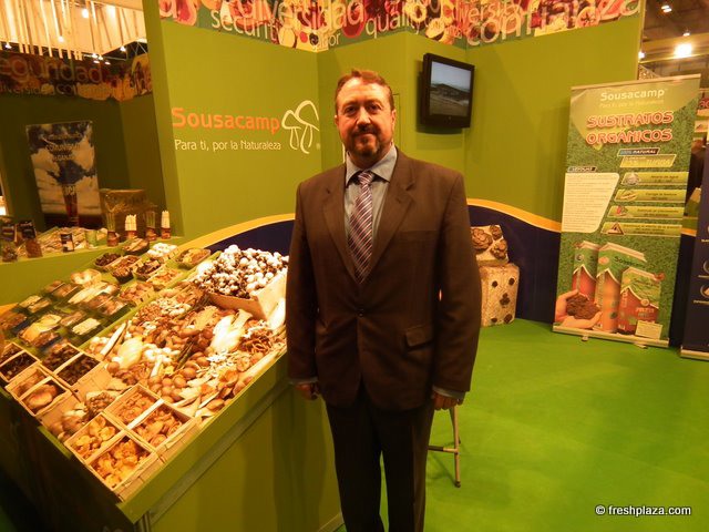 Rui Sampaio, de Sousacamp, promocionando sus sustratos orgánicos y sus setas, espárragos y endivias.