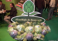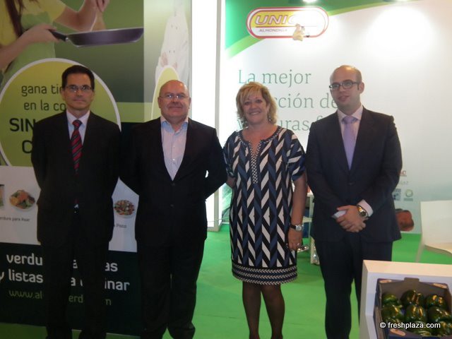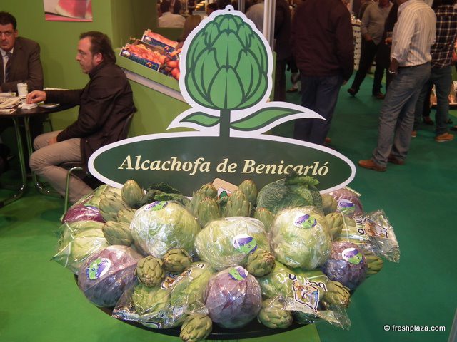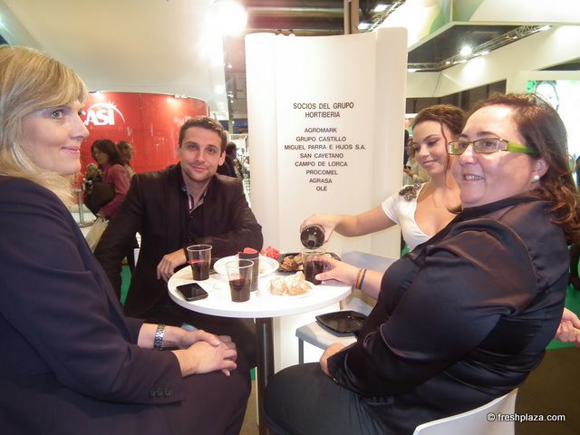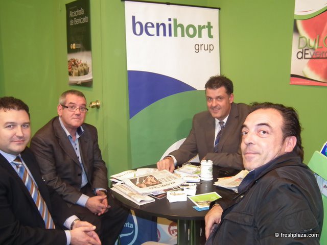Sebastián Torres y Luis Montañés, de Benihort,junto con dos clientes. Benihort grup estuvo promocionando las alcachofas de Benicarló, su producto estrella.