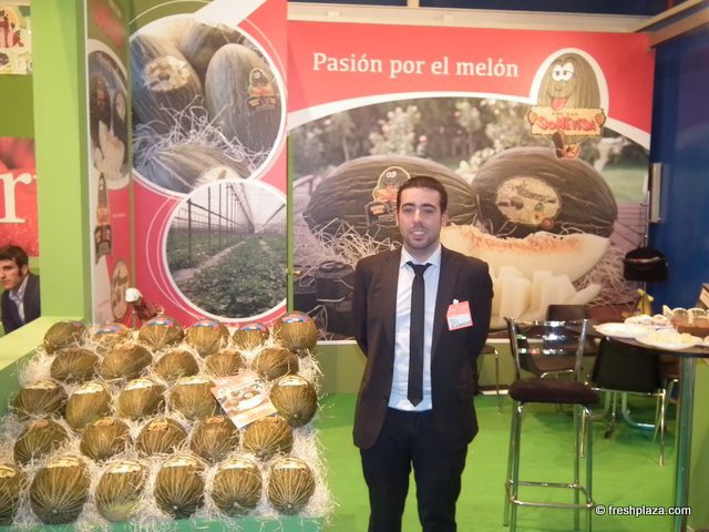 Javier Uceda de Frutas Somevisa con su especialidad: el melón Piel de Sapo de Villaconejos. Son muy positivos con su primera exposición en Fruit Attraction.
