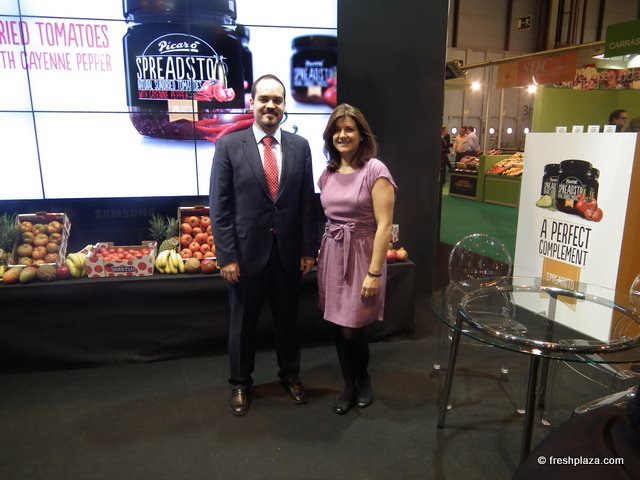 Víctor Soler y Almudena de AGRUPAPULPÍ posando para freshplaza.es con muchas expectativas puestas en la nueva edición de Fruit Attraction