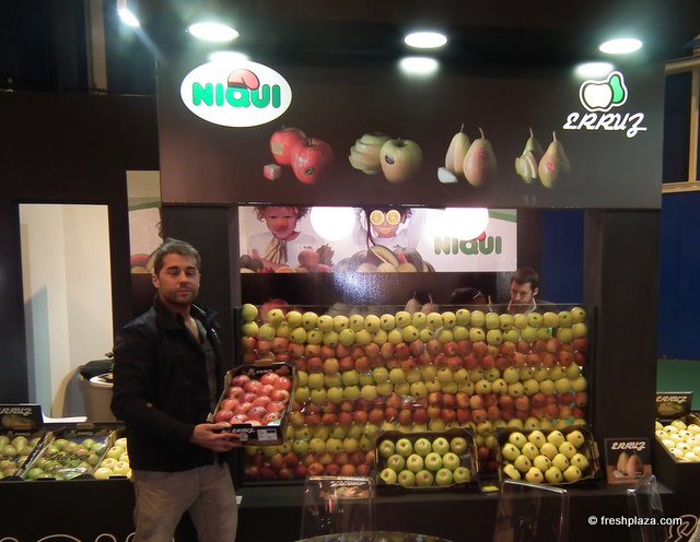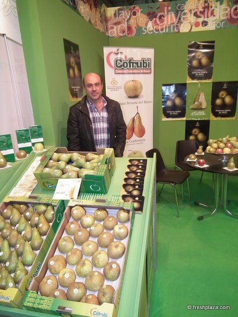 Presidente de Cofrubi promocionando las peras y manzanas del Bierzo. Son los únicos productores de frutas con la D.O. del Bierzo.