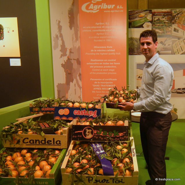El stand de Salas con su director José Salas, promocionando las clementinas valencianas bajo la marca SALAS.