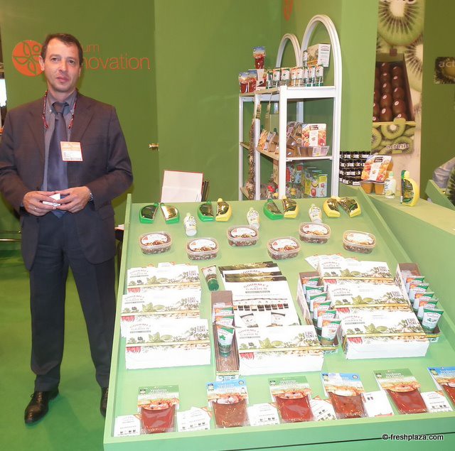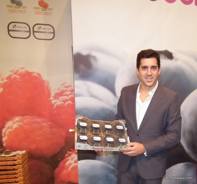 Alberto Jiménez Capitán, de EUROBERRY, presentando la nueva marca de arándanos BERRY TOUCH, la cual se expuso en la PASARELA INNOVA junto a las otras 16 novedades.