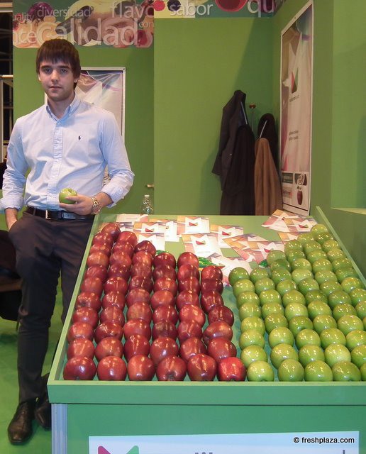 Àngel Olivera, comercial del jóven equipo de MEDITERRANSWEET FRUITS, mostrando sus espléndidas manzanas.