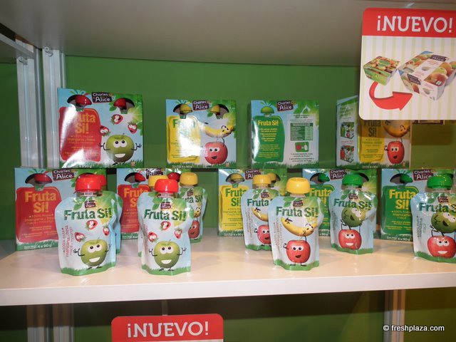 Tras una larga experiencia y crecimiento en ventas lanza un nuevo diseño para sus cantimploras de 90g de Charlie Alice. Un Práctico y divertido envase para llevar y tomar en cualquier sitio: en el patio del cole, en el parque, y a cualquier hora, en el desayuno, en la merienda o como postre. Se trata de fruta 100%, sin azúcar añadido y nada de grasas.