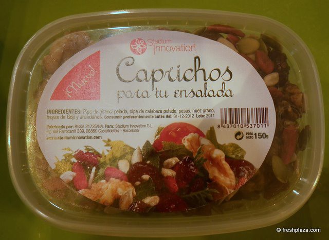 "Nuevo envase de complementos de frutos secos para ensaladas "Caprichos para tu ensalada", de Stadium Innovation"