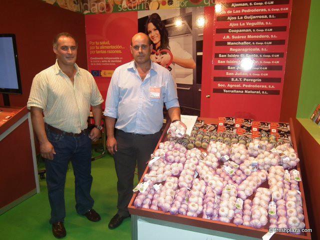 "Juan Martínez de "IGP Ajo Morado de Las Pedroñeras" y Juan Jesús, amigo y exportador de los mismos ajos. Están promocionando los ajos morados de Las Pedroñeras (Cuenca)considerados por muchos expertos como los mejores ajos del mundo."
