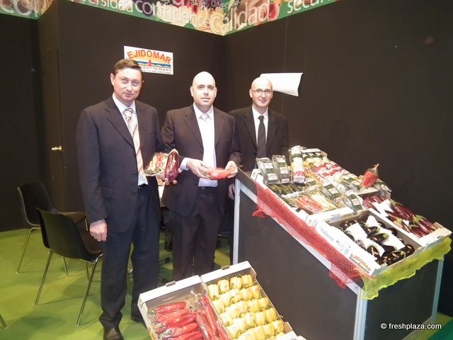 M. Ángel Jiménez y Víctor Rodriguez, de JimboFresh INTERNATIONAL, promocionando sus pimientos de tres colores.