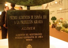 Premio ALIMENTOS DE ESPAÑA 2011 A LA PRODUCCIÓN AGRARIA, otorgado a ALIMER por el Ministerio de Agricultura Alimentación y Medio Ambiente.