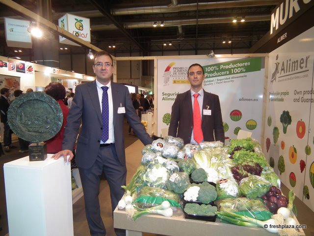 Jesús J. Abenza y Antonio David Sánchez, de Alimer, luciendo su Premio ALIMENTOS DE ESPAÑA y promocionando sus hortalizas de la huerta de Murcia.