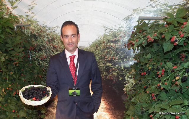 José Antonio Ortiz, de Plus Berries, mostrando sus grandes y dulces moras en su original stand que nos traslada a los invernaderos donde se cultiva esta fantástica fruta.