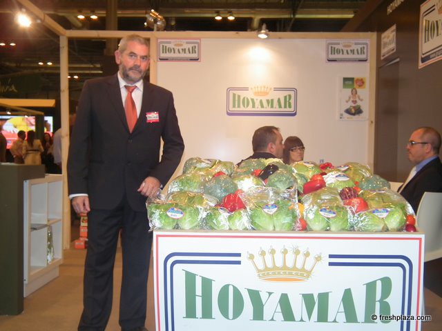 David Baños, de Agrupaejido en su stand, mostrando todas sus hortalizas de Almería.