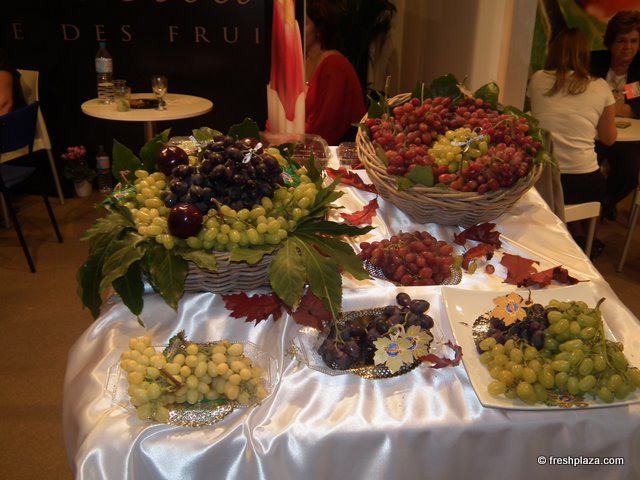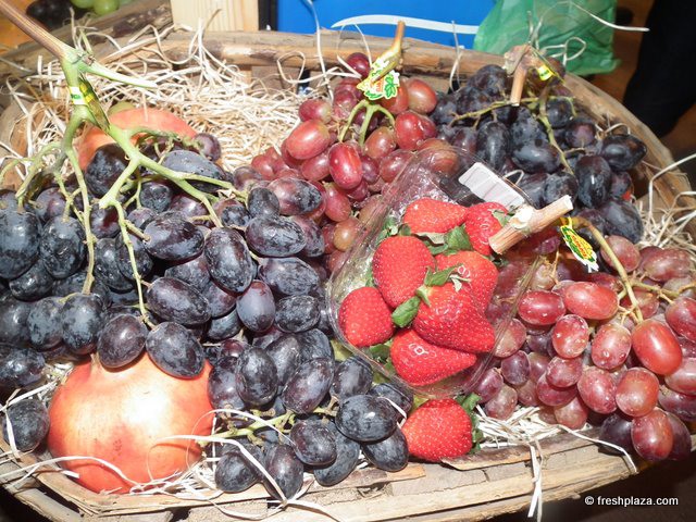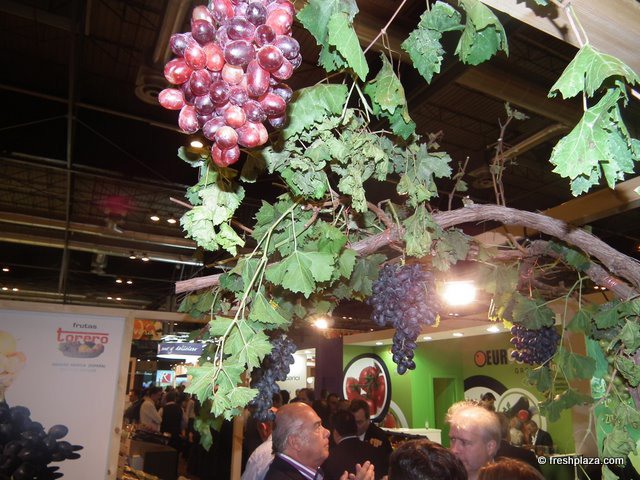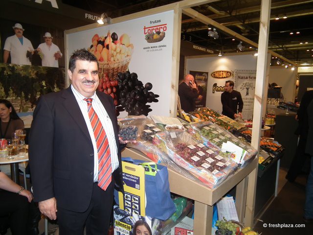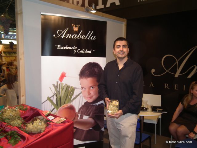 Antonio Caballer, de FRUTAS TORERO, promocionando sus uvas de tres variedades diferentes cultivadas en Murcia.