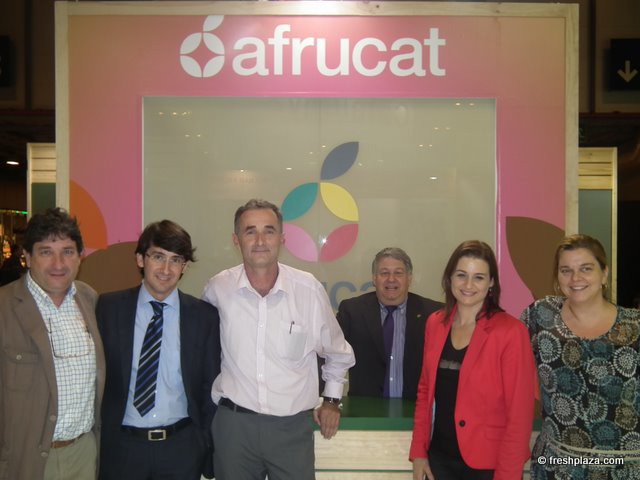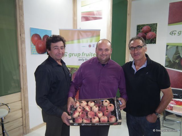 Directiva de Grup Fruiter promocionando su fruta de hueso de Benissanet (Tarragona)