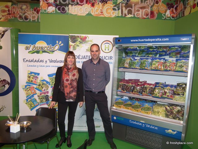 "Gorka Cirauqi (derecha), de Huerta de Peralta, promocionando su línea de ensaladas y verduras frescas envasadas bajo la marca "el huertico"